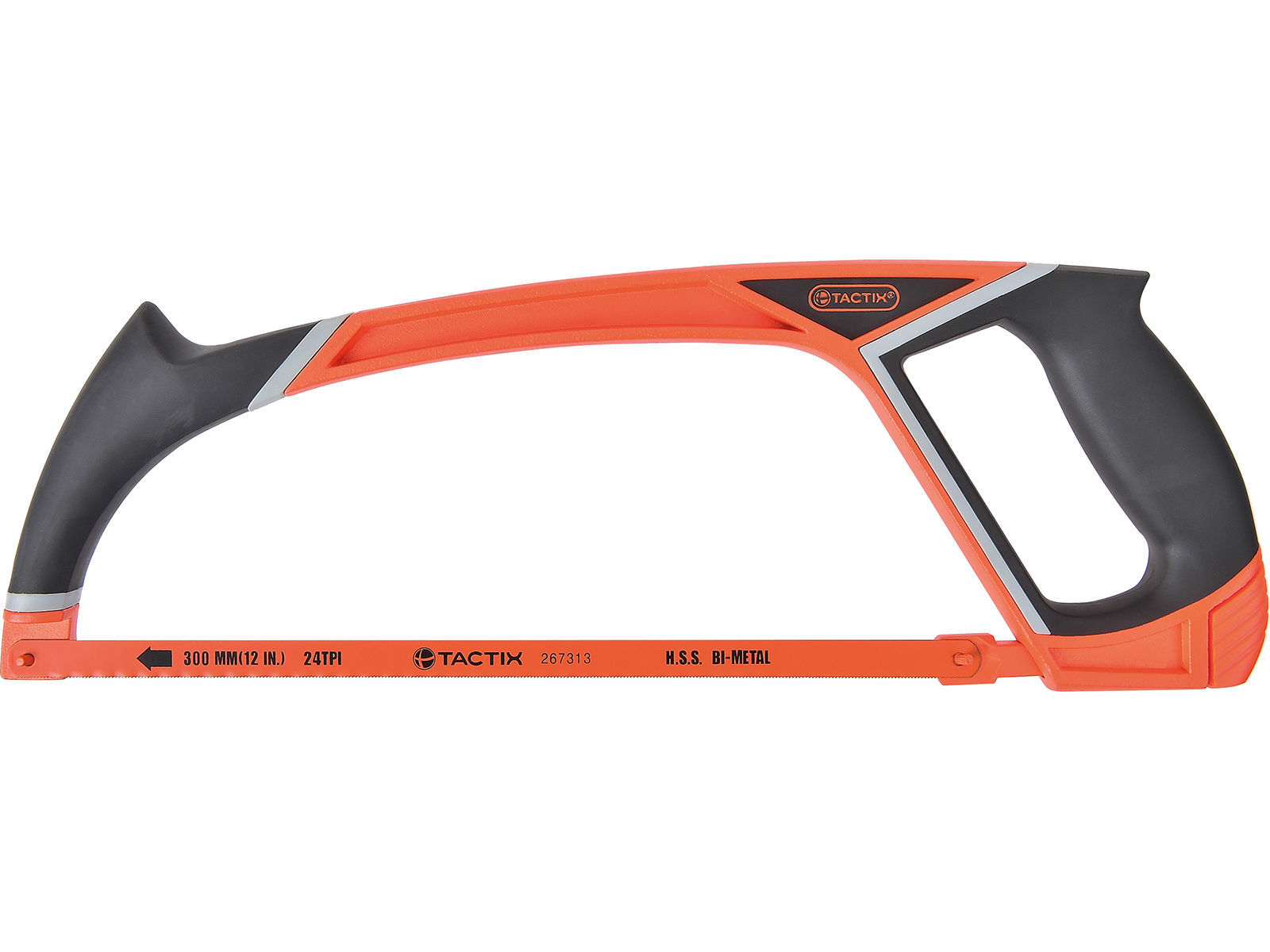 Lett 2-komponents baufilbue med stålprofil. Høy bladspenning noe som gir presise og rette snitt. Komfortabelt håndtak som sikrer et solid grep. Bladvinkelen kan endres til 45 grader. Leveres med 300mm (12") bimetall baufilblad 24 tenner/tomme.