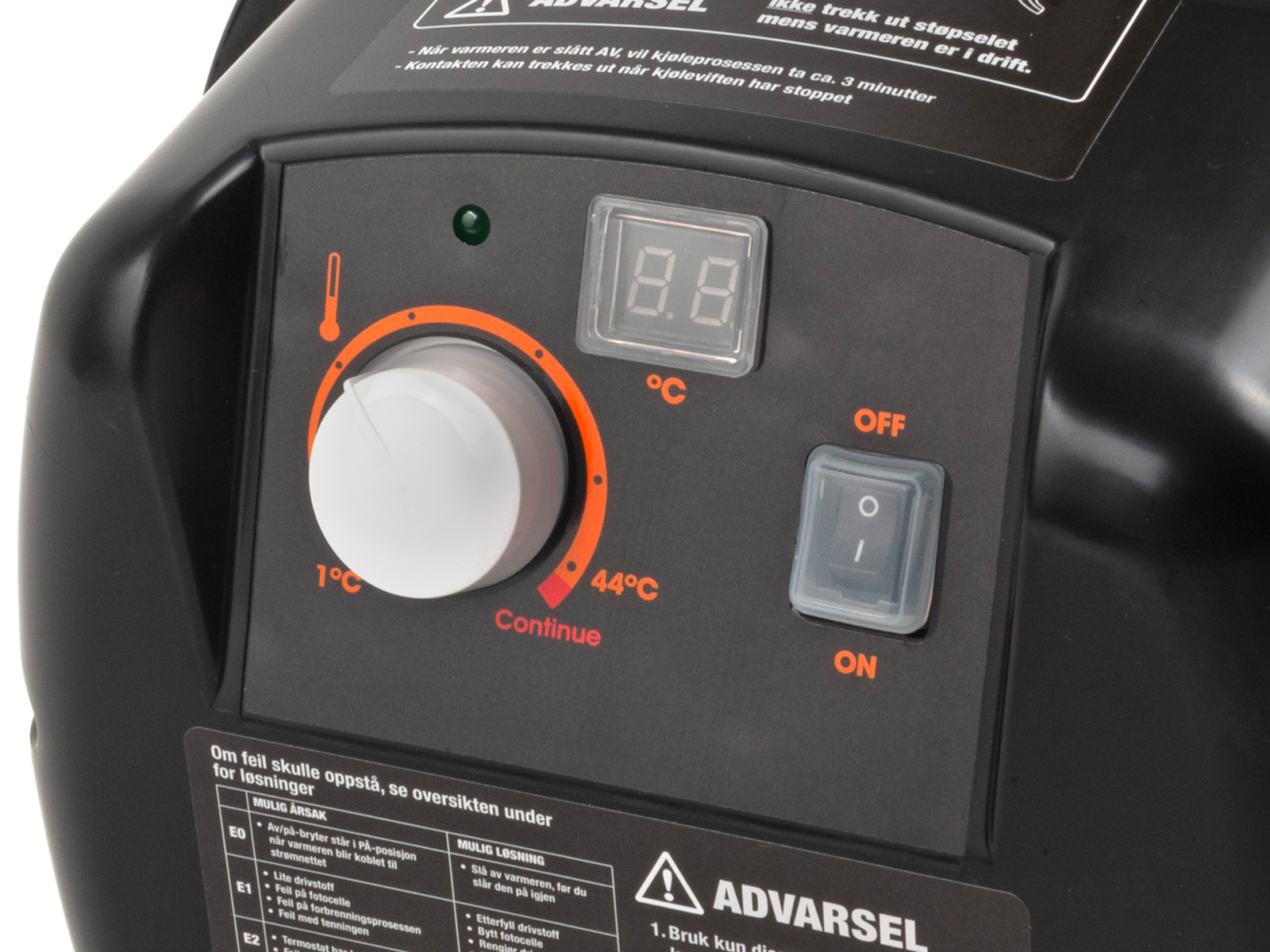 Videre er byggtørkeren/strålevarmeren utstyrt med :