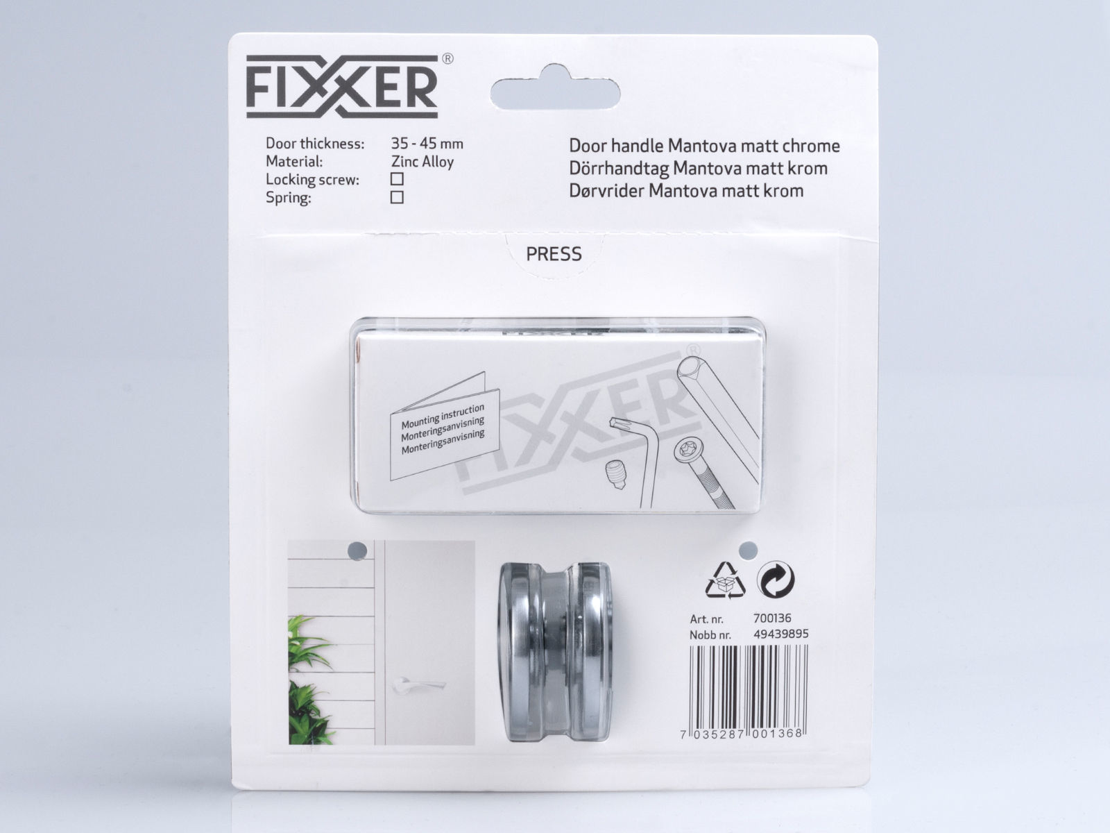 Dørvrider av zink/alloy for innerdører. Krom matt utførelse. Passer til dørtykkelse 35-45 mm. Leveres komplett med nøkkelskilt type R1 samt skruer og tilbehør. Vriderskiltene i denne PREMIUM-serien har den unike egenskapen at de sitter ekstra godt på døren.