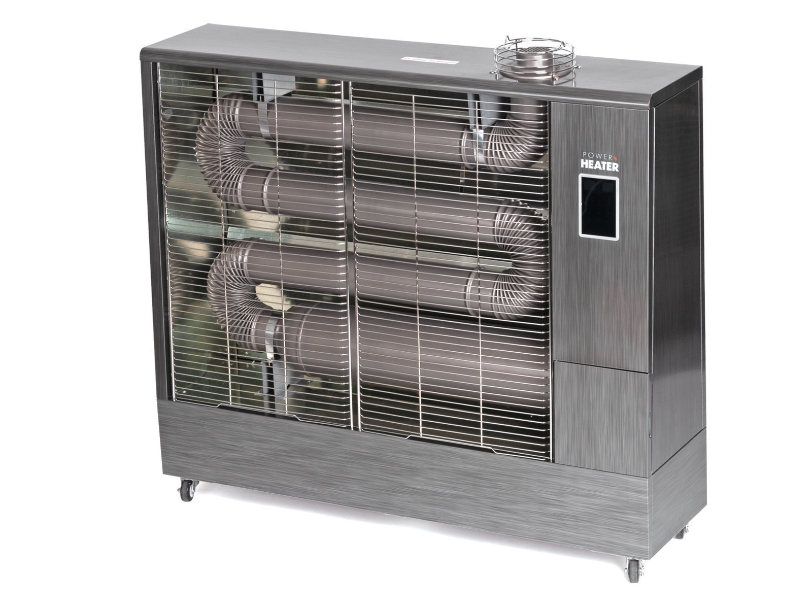 Kapasitet på 17,5 kW – lavt drivstofforbruk og lydnivå (48 dB) Meget effektiv forbrenning sørger for en fullstendig og ren forbrenning Kan brukes med både diesel, biodiesel eller parafin. Lav vekt – 58 kg – lett flyttbar på 4 hjul Utstyrt med mange sikkerhetsfunksjoner – for trygg og sikker drift! Mobil infrarød dieselvarmer, som kan drives både av diesel, biodiesel og parafin, for lokaler opptil 1700 m3. Dieselvarmeren leveres med LCD touchscreen og fjernkontroll for enkel bruk. Meget effektivt forbrenningssystem gir en fullstendig og ren forbrenning, uten lukt og røyk. Men husk at alle dieselvarmere skal benyttes i godt ventilerte rom! Den infrarøde byggvarmeren gir varme gjennom infrarøde stråler, noe som resulterer i at man varmer opp flatene i rommet, og ikke luften. Dieselvarmeren har ikke vifte, da den infrarøde varmen fordeles jevnere og bedre enn varmen fra en viftestyrt byggvarmer, også i store lokaler. Sikkerheten er godt ivaretatt med flere sikkerhetsfunksjoner, slike som: - innebygd sikkerhetstermostat som hindrer overoppheting - automatsikring for overspenning - overbelastningsvern for tenningssystem - flammevokter - veltesikring som slår av varmer når denne ikke står på flatt underlag - registrering av strømbrudd - varmebeskyttende deksel på varmeren - sensor som registrerer lavt drivstoffnivå - oppfyller EU’s utslippskrav Husk tilførsel av oksygen som bør sirkulere i rommet! Videre er byggtørkeren/strålevarmeren utstyrt med: Termostat for effekt-/temperaturjustering 4 roterende hjul , hvorav 2 med låsing Av/på-bryter Drivstoff tankmåler Ledning med stikkontakt Et kvalitetsprodukt fra anerkjent produsent i Sør-Korea!