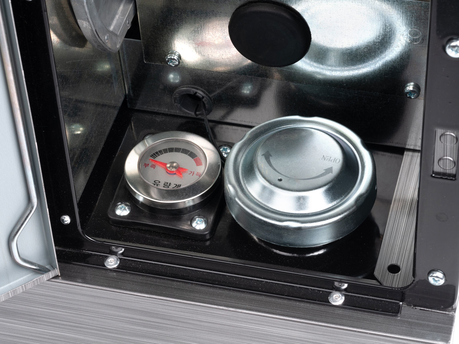 Kapasitet på 21,0 kW – lavt drivstofforbruk og lydnivå (48 dB) Meget effektiv forbrenning sørger for en fullstendig og ren forbrenning Kan brukes med både diesel, biodiesel eller parafin. Lav vekt – 63,5 kg – lett flyttbar på 4 hjul Utstyrt med mange sikkerhetsfunksjoner – for trygg og sikker drift! Mobil infrarød dieselvarmer, som kan drives både av diesel, biodiesel og parafin, for lokaler opptil 2000 m3. Dieselvarmeren leveres med LCD touchscreen og fjernkontroll for enkel bruk. Meget effektivt forbrenningssystem gir en fullstendig og ren forbrenning, uten lukt og røyk. Men husk at alle dieselvarmere skal benyttes i godt ventilerte rom! Den infrarøde byggvarmeren gir varme gjennom infrarøde stråler, noe som resulterer i at man varmer opp flatene i rommet, og ikke luften. Dieselvarmeren har ikke vifte, da den infrarøde varmen fordeles jevnere og bedre enn varmen fra en viftestyrt byggvarmer, også i store lokaler. Sikkerheten er godt ivaretatt med flere sikkerhetsfunksjoner, slike som: - innebygd sikkerhetstermostat som hindrer overoppheting - automatsikring for overspenning - overbelastningsvern for tenningssystem - flammevokter - veltesikring som slår av varmer når denne ikke står på flatt underlag - registrering av strømbrudd - varmebeskyttende deksel på varmeren - sensor som registrerer lavt drivstoffnivå - oppfyller EU’s utslippskrav Husk tilførsel av oksygen som bør sirkulere i rommet! Videre er byggtørkeren/strålevarmeren utstyrt med: Termostat for effekt-/temperaturjustering 4 roterende hjul, hvorav 2 med låsing Av/på-bryter Drivstoff tankmåler Ledning med stikkontakt Et kvalitetsprodukt fra anerkjent produsent i Sør-Korea!