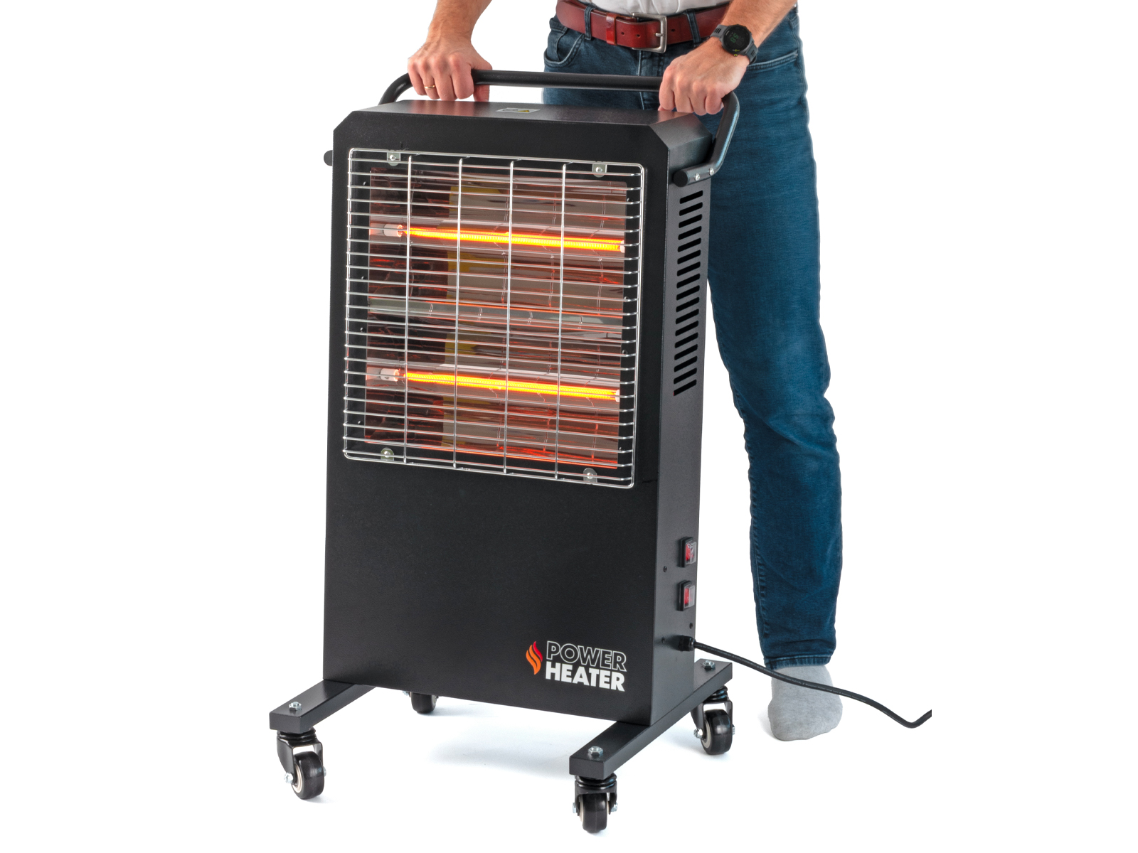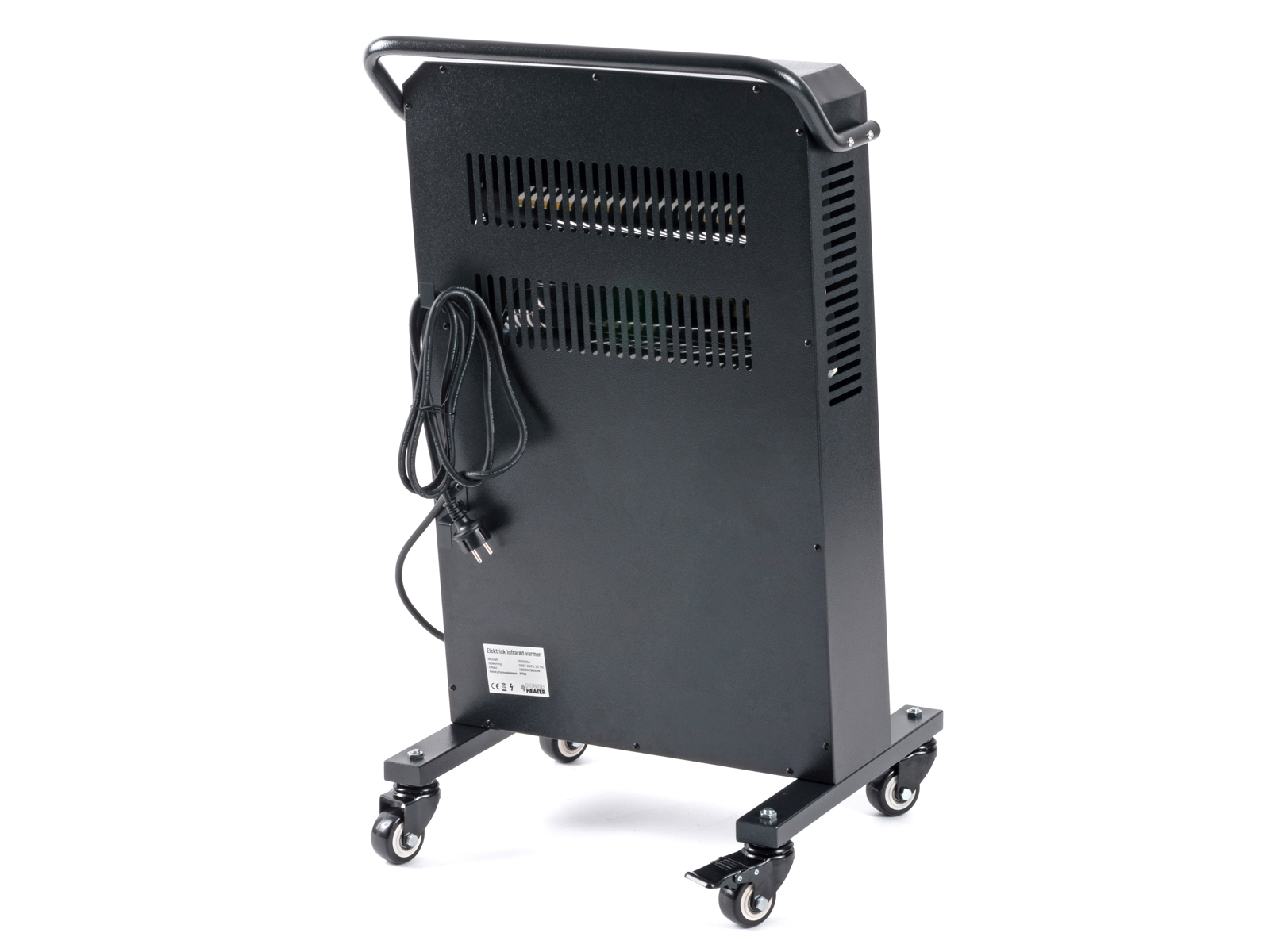 Varmeren er montert på 2 braketter med 4 solide hjul, hvor 2 av hjulene er låsbare. Lav vekt, håndtak og solide hjul gjør den veldig enkel å flytte med seg.