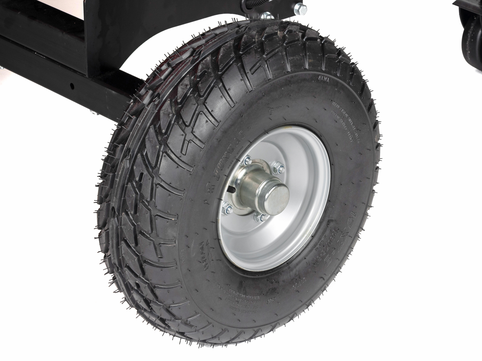 Fliskutteren er utstyrt med to luftfylte dekk og tilhengerfeste som letter transporten.