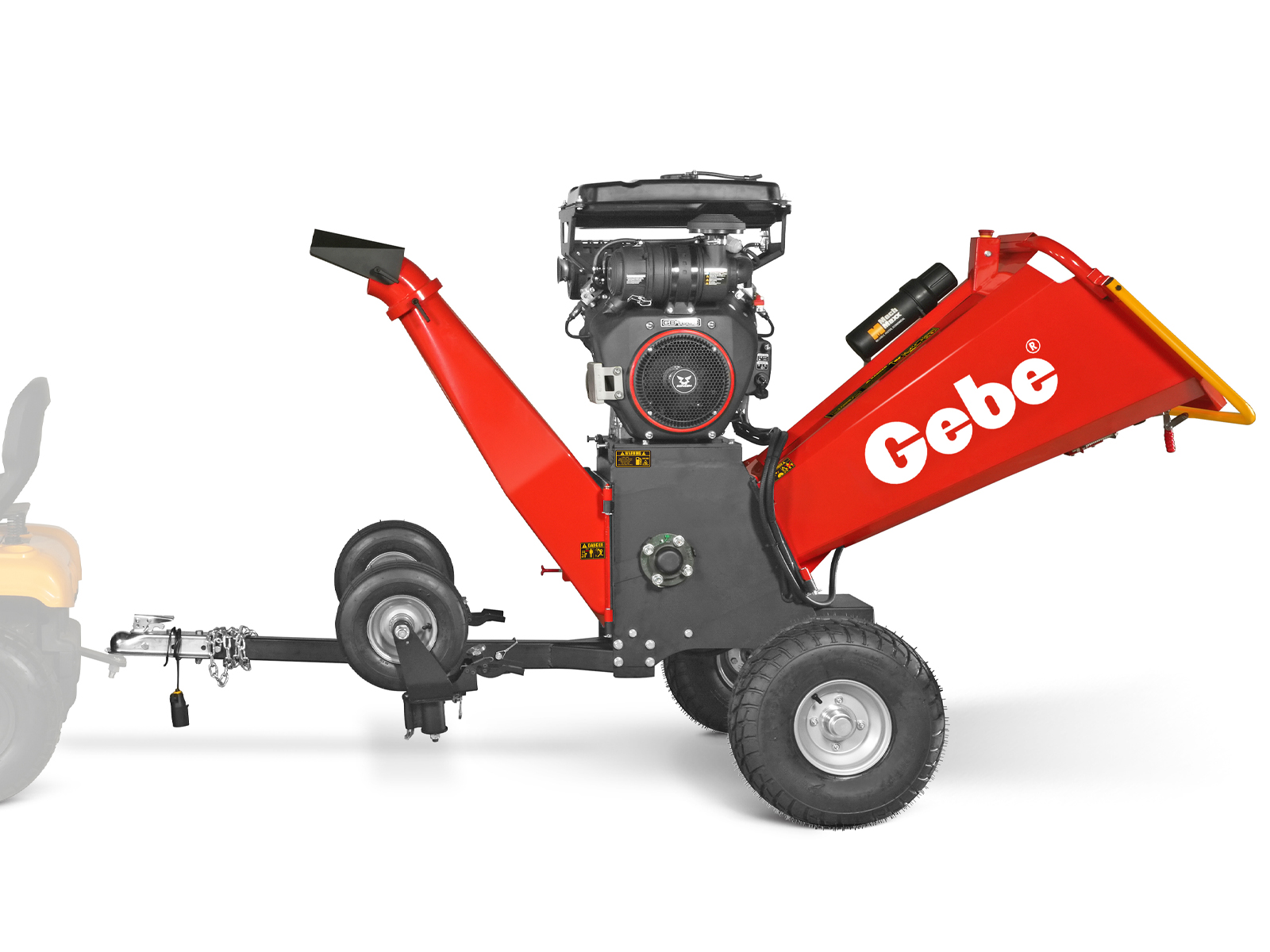- To vendbare transporthjul på hengerfeste gjør maskinen lett å flytte med ATV eller hagetraktor