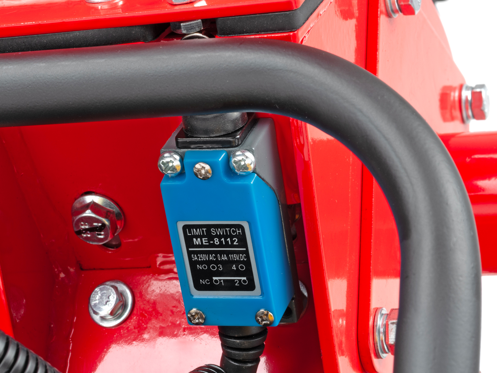 For brukerens sikkerhet er fliskutteren utstyr med nødstopp, denne aktiveres ved å trekke ut flisoppsamleren.