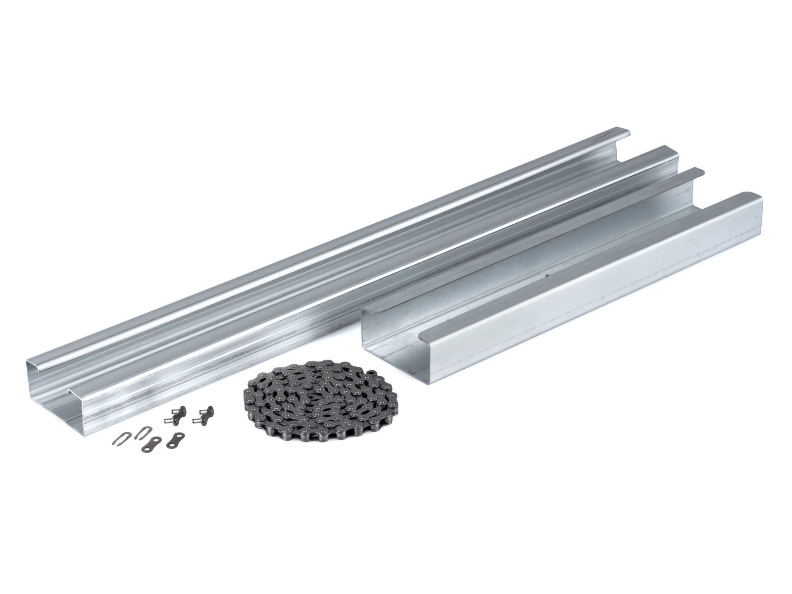 Skinne kan forlenges med forlenget skinne 0,6 meter, skinne, kjede og nødvendige beslag medfølger.