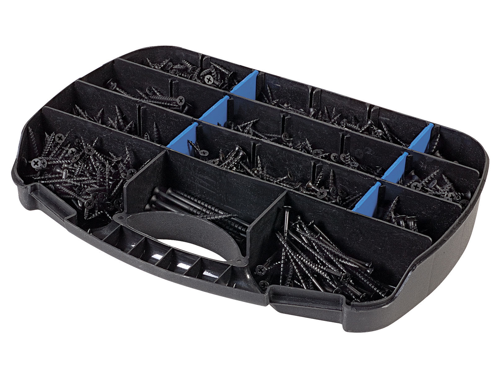 1450 stk. En miks av gipsskruer elforsinket i størrelse 25-75 mm. Kommer i sortimentkoffert.