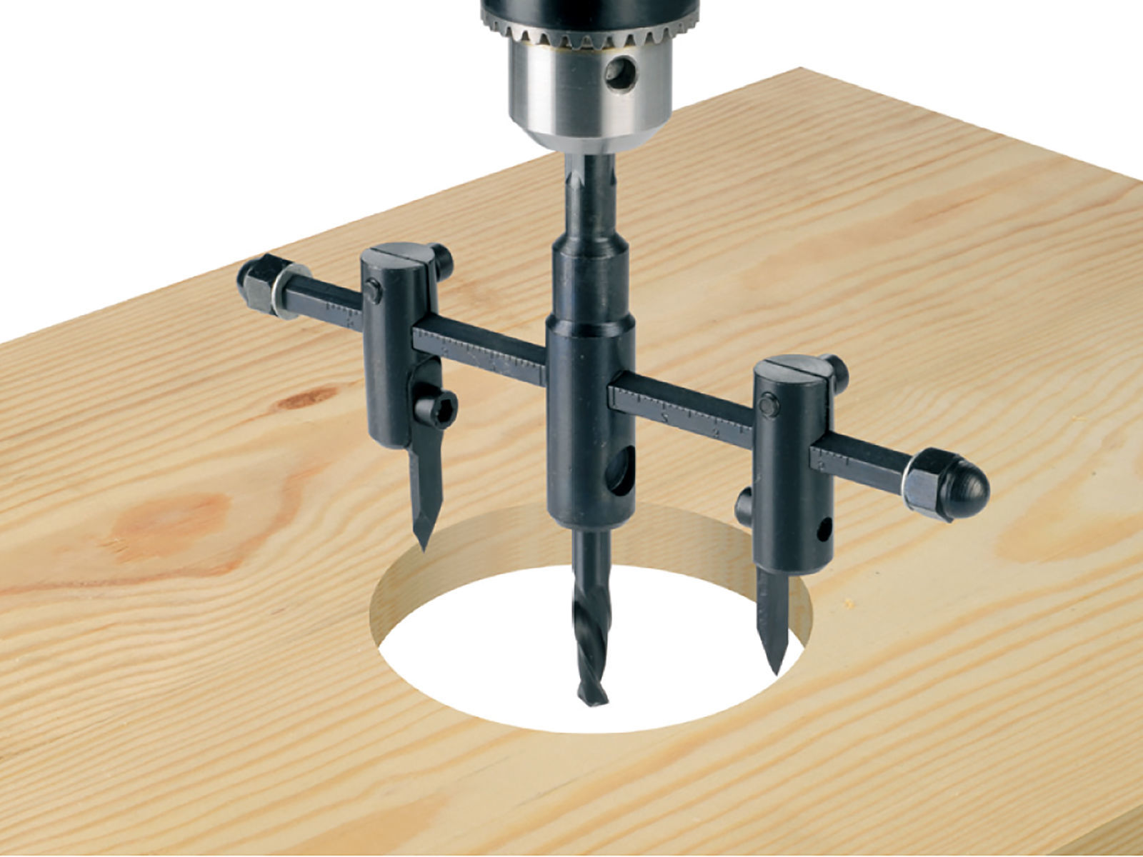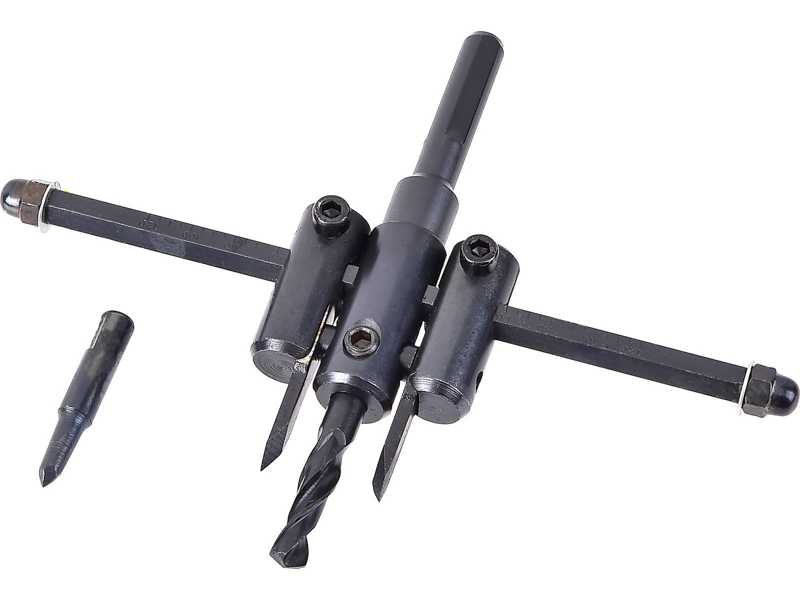 Hullsag med kniver som er justerbar fra 30-120 mm. Egner seg godt til hulltaking i f.eks. treverk, kryssfiner, gips og plast.