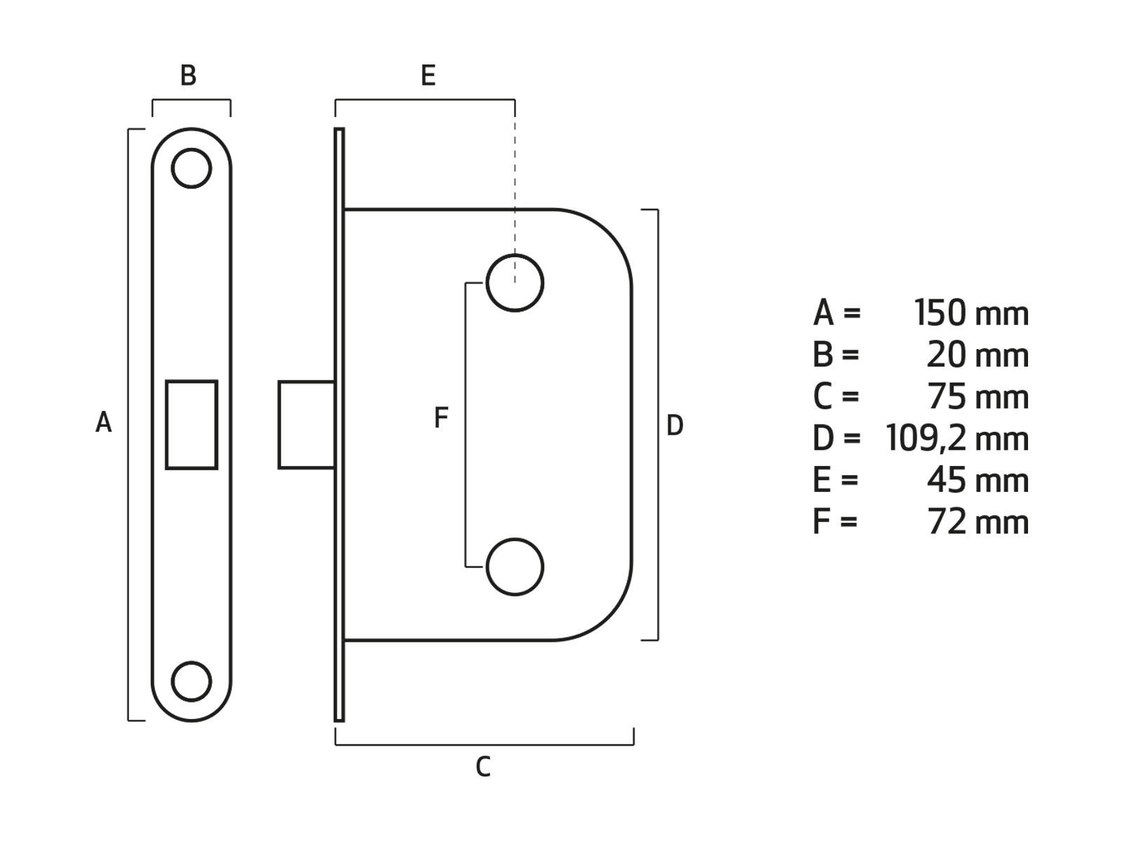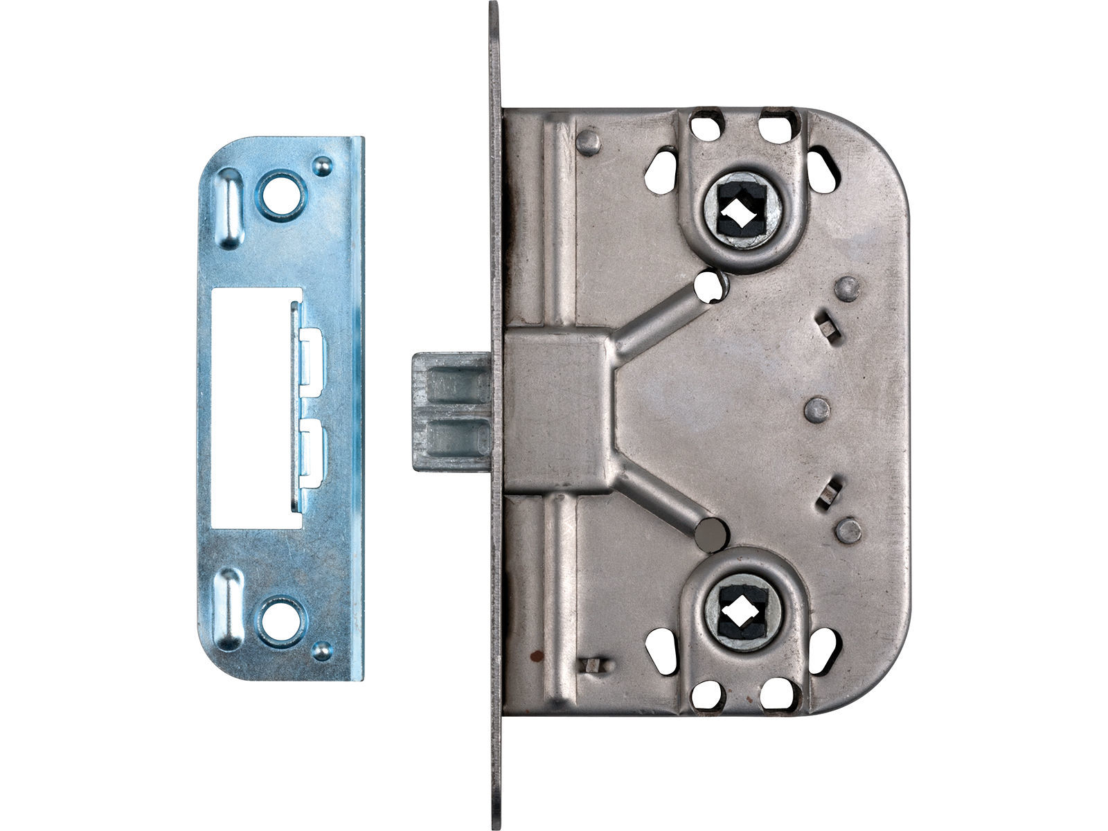 Låskasse for innvendig lettdører som betjenes av WC-garnityr. Elforsinke utførelse. Slagretning endres ved å ta ut en plastforing. Leveres med nøkkel og sluttstykke.