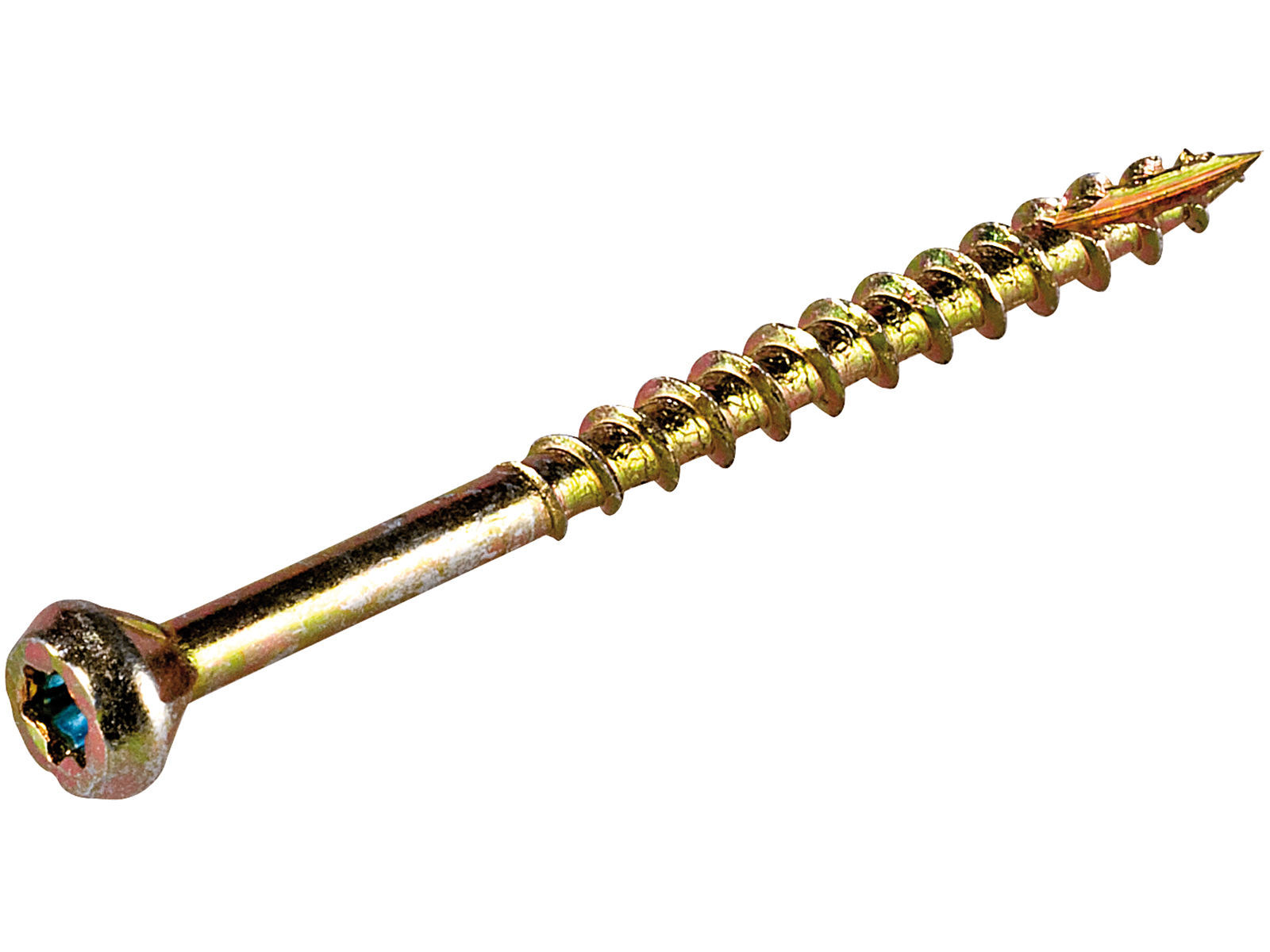 Skrue beregnet for montering av lister. Produsert av herdet stål med gulkromatisert overflatebehandling. Knapphodet sørger for at skruen forsenkes godt i underlaget.