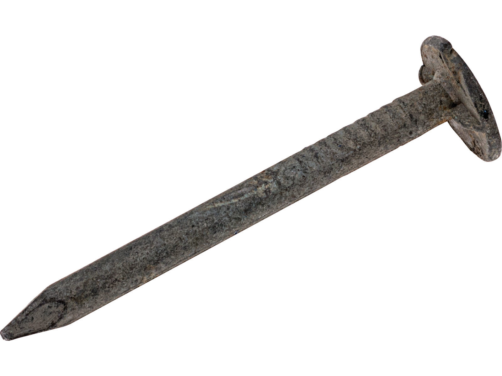 Spiker med flatt hodet beregnet for montering av papp på trevirke. Produsert av herdet stål med varmforsinket overflatebehandling.
