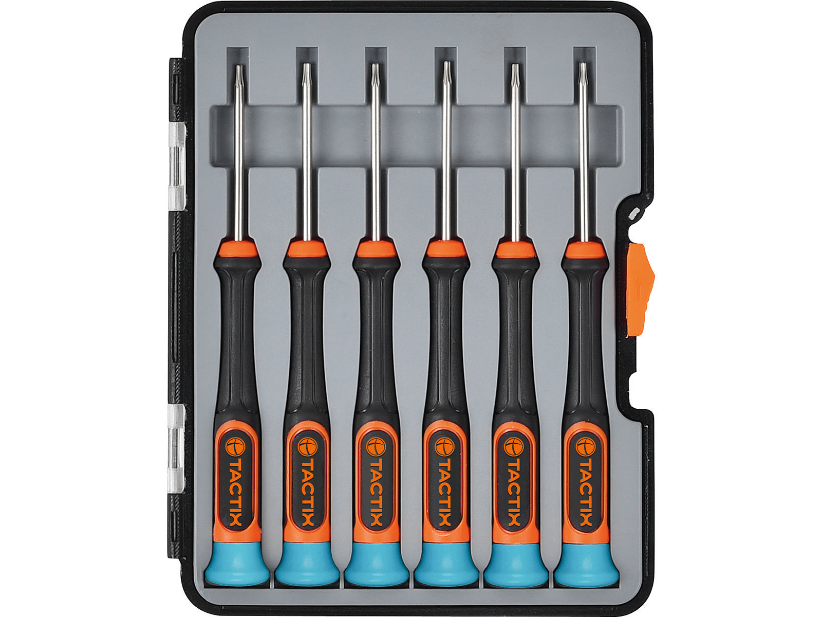Rund klinge av S2 kvalitetsstål. Ergonomisk og gripevennlig håndtak med roterende topp. Settet inneholder T5, T6, T7, T8, T9 og T10.