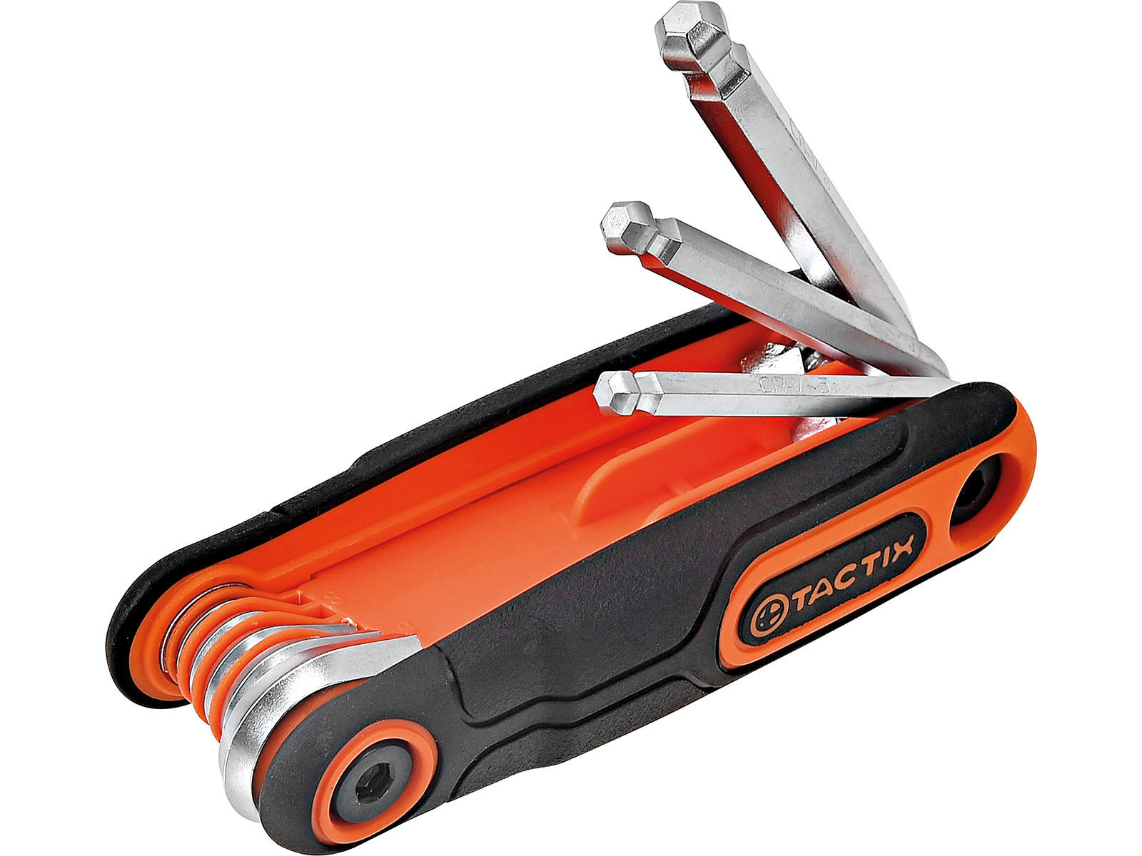 Utført i krom vanadium. Foldbare nøkler med kulehode i ene enden. Settet inneholder nøkler fra 2 til 8 mm.