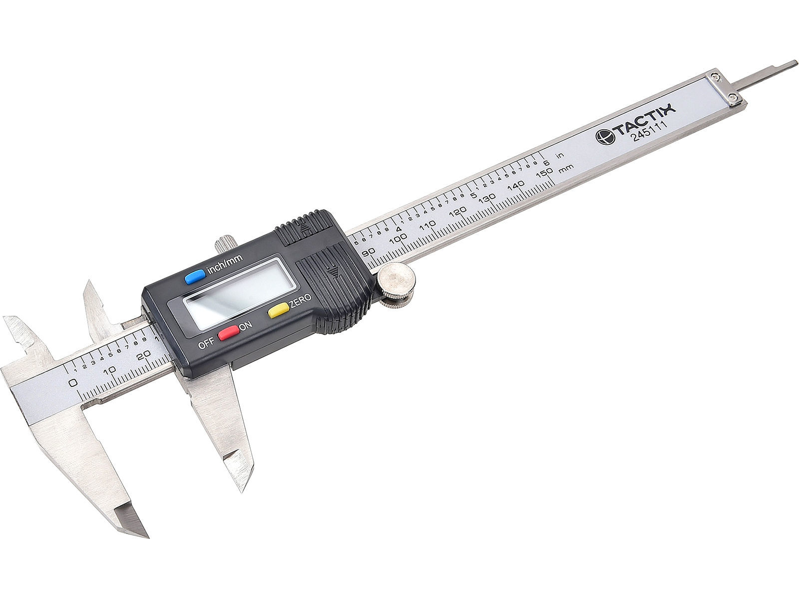 Skyvelær i rustfritt stål med tydelig digital avlesning av måleresultat. Måler innvendig, utvendig, dybde- og trinnmål. Måler med en nøyaktighet på 0,01 mm og 1/1000 tommer. Velg mellom avlesning i mm eller tommer. Knapp for nullstilling av displayet, samt låseknapp.