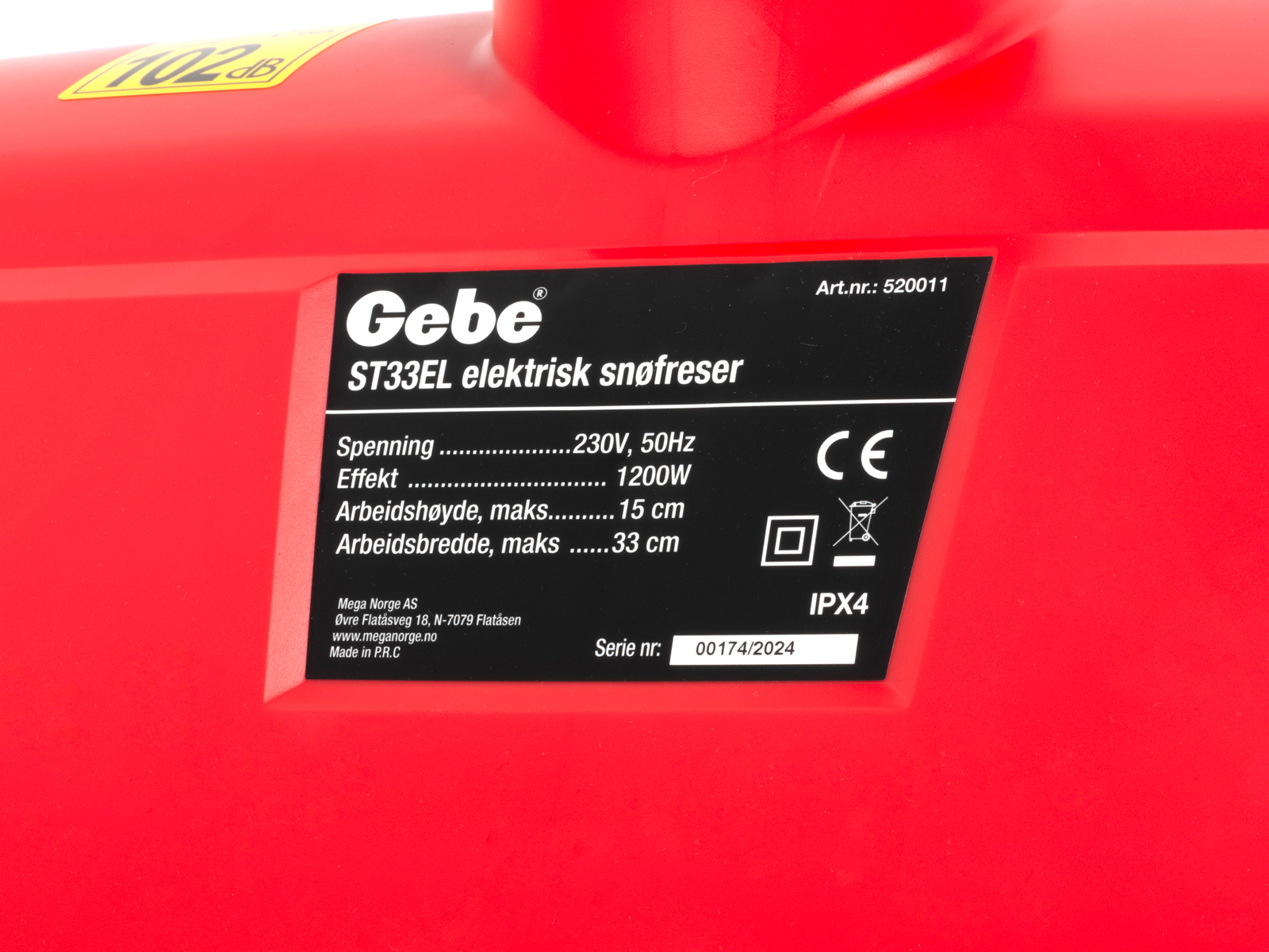 Letthåndterlig og effektiv snøfreser/snørydder for snørydding av mindre områder, slik som oppkjørsler, gangveier, terrasser, balkonger mv.  Ryddebredden er 33 cm, og med en elektrisk motor på hele 1,2 kW, kan man fjerne opptil 15 cm høy snødybde.  Det eneste du trenger for å rydde snø med denne snøfreseren, er en god og lang dertil egnet skjøteledning.