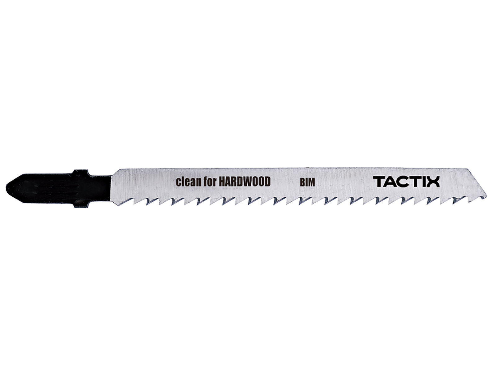 Clean for Hard Wood stikksagblad lager rene rette kutt i tre. Presisjonsslipte tenner med konisk utforming kutter rent. Bladmateriale av BIM (bi-metall) noe som gjør bladet egnet for kutting i harde materialer som hardt treverk og slipende trearbeidsmaterialer. Det har fin progressiv tannavstand (2,5 mm) og kutter mange ulike trematerialer med en tykkelse på 3-30 mm. T-feste.