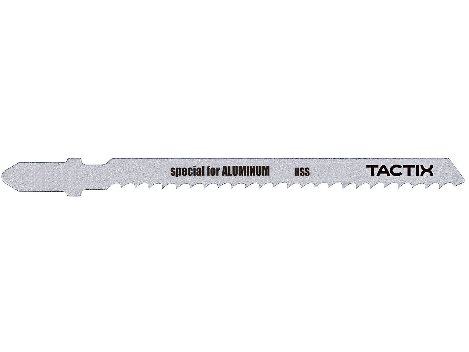 Special for Alu stikksagblad lager raske avrundede kutt i metall. Tanngeometrien med valsede tenner på siden med store ovale mellomrom og smalt blad er utformet for raske avrundede kutt. Bladmateriale av fullherdet høyhastighetsstål er egnet for kutting av aluminium og ikke-jernholdige metaller. Det har middels tannavstand (3,2 mm) og kutter aluminiumsplater med en tykkelse på 3-15 mm, og aluminiumsrør og profiler med en diameter på opptil 30 mm. T-feste.