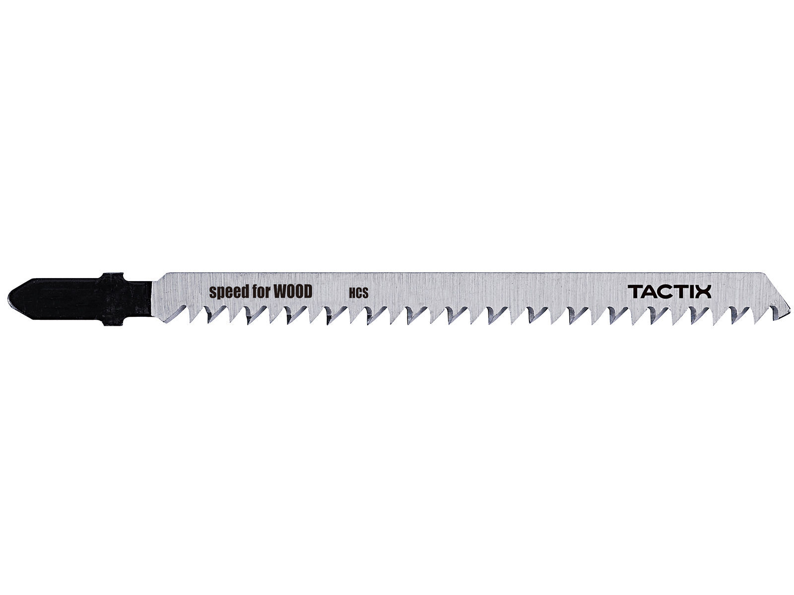 Speed for Hard Wood stikksagblad lager raske rette kutt i tre. Skarpslipte tenner på siden lager raske kutt. Blad av høykarbonstål som. Egnet for kutting i harde materialer som hardt treverk og slipende trearbeidsmaterialer. Dette produktet har stor progressiv tannavstand (4,2 mm) og kutter mange ulike massive trematerialer med en tykkelse på 5-85 mm. T-feste.