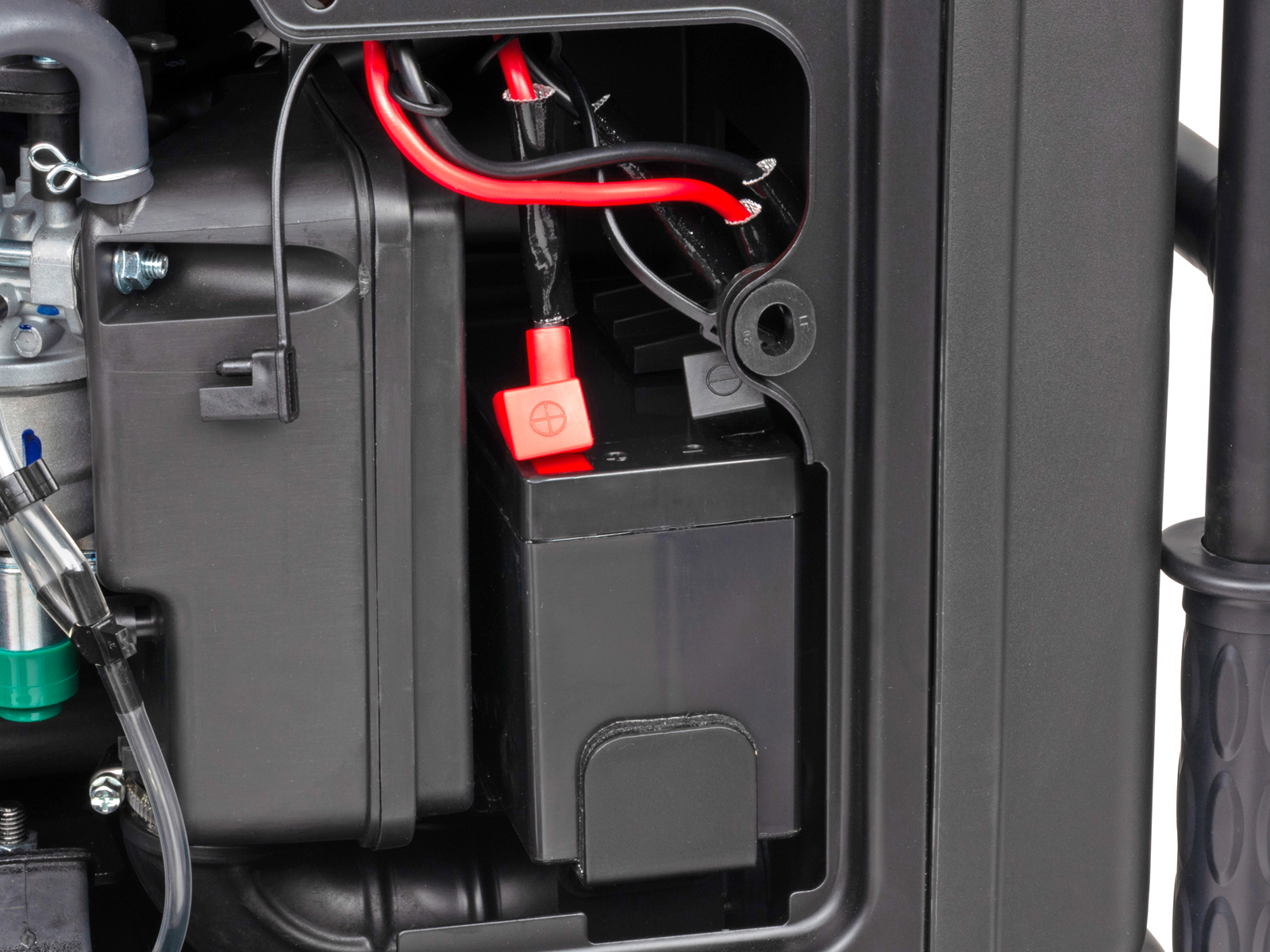 Aggregatet leveres med elektrisk start, startbatteri er inkludert, fjernkontroll for elektrisk start og kan også lett startes med storstart. Forgasseren reagerer raskt på drivstofftilførsel, enklere å starte, også etter en tids lagring.