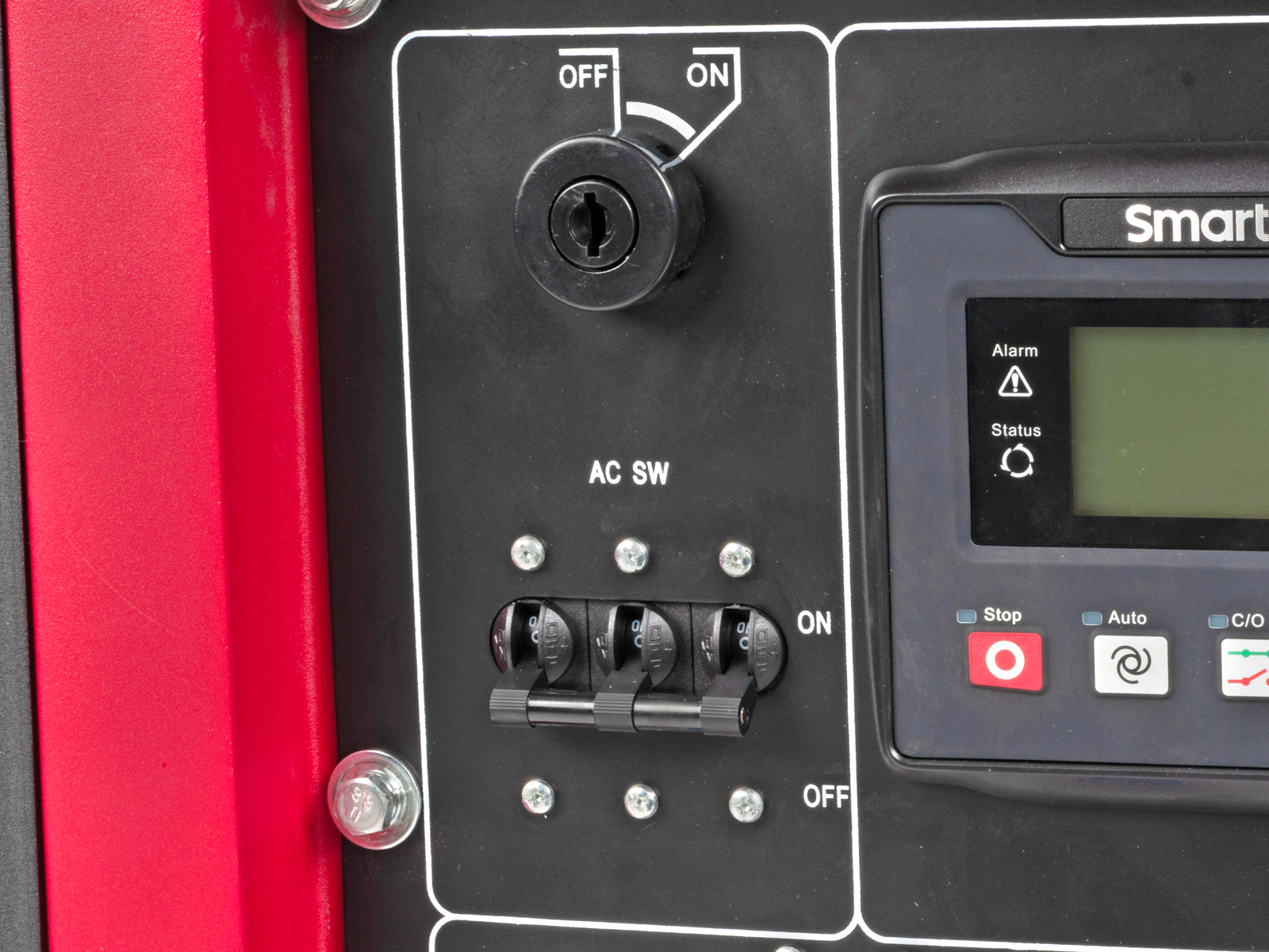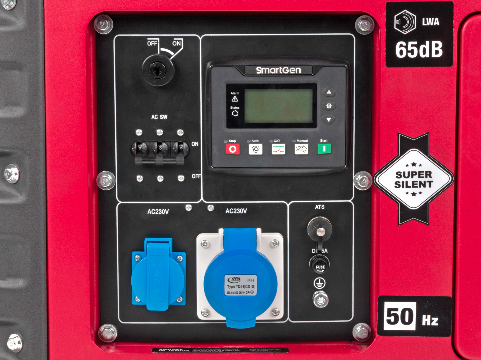 "Super-silent" dieseldrevet strømaggregat med både 1-fase (230V.) og 3-fase (230V.) strømuttak.  Med en maksimal effekt på 7,5 kW (3-fase) gjør dette aggregatet meget anvendelig til mange arbeidsoppgaver.  Aggregatet leveres med elektrisk start og batteri, samt trådløs fjernstart med rekkevidde opptil 50 meter.  Aggregatet er utstyrt med forvarming (glødeplugg), som gjør start i lave temperaturer bedre og mer skånsomt for motoren.  Videre er dette aggregatet utstyrt med AVR (automatisk spenningsregulering), oljevakt, digitalt betjeningspanel som gir brukeren god informasjon og forenkler bruk, stor tank som gir 6 timers driftstid, samt kraftig hjulgående rammekonstruksjon med løftekrok, som forenkler transport av aggregatet.  Aggregatet er meget godt lydisolert, og har et lydnivå på bare 65 dBA v/7 meter.  Aggregatet har ATS-utgang, noe som gjør at denne modellen kan tilkobles et ATS-skap (automatic transfer switch) for tilkobling til elektrisk nett via bygningens sikringsskap.  Dette krever et ATS-skap og en lastevender, denne installasjonen må utføres av elektriker.