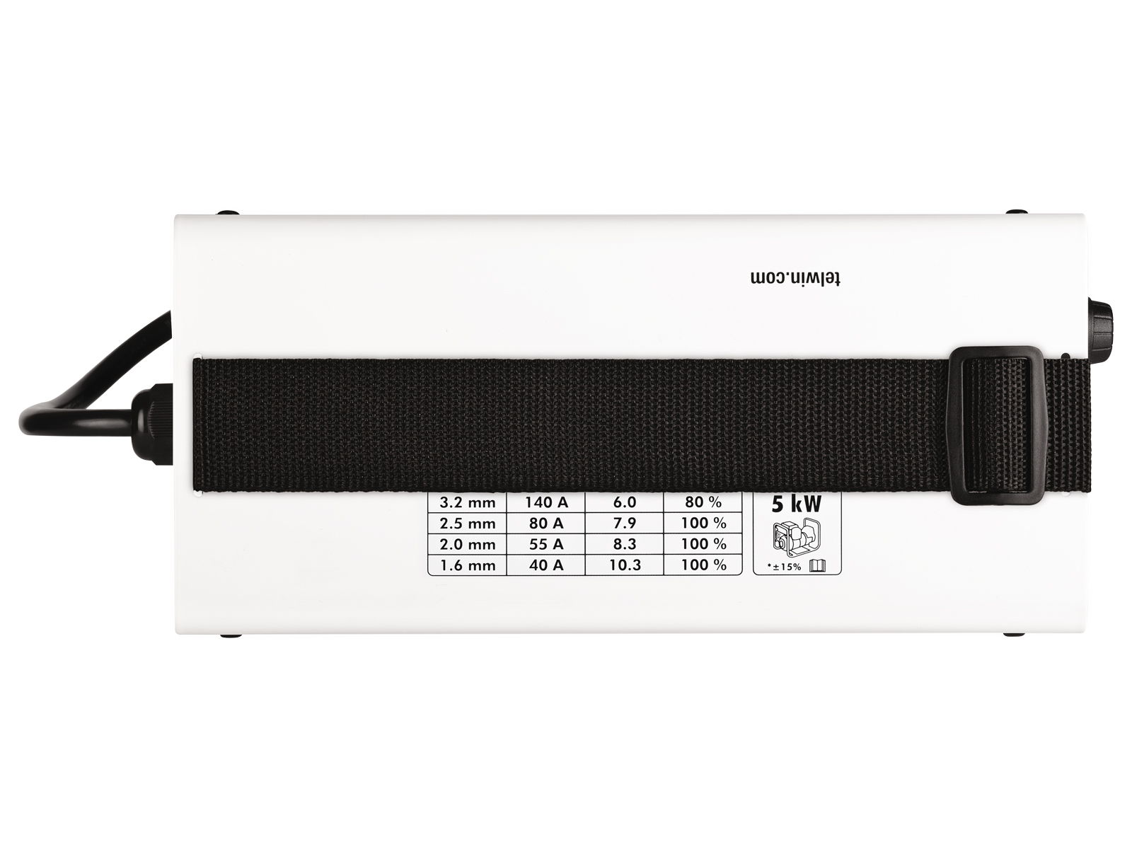 Denne modellen leveres med: elektrodeholder med sveisekabel 1,8 m., jordingsklemme med sveisekabel 1,8 m. og slagghammer.