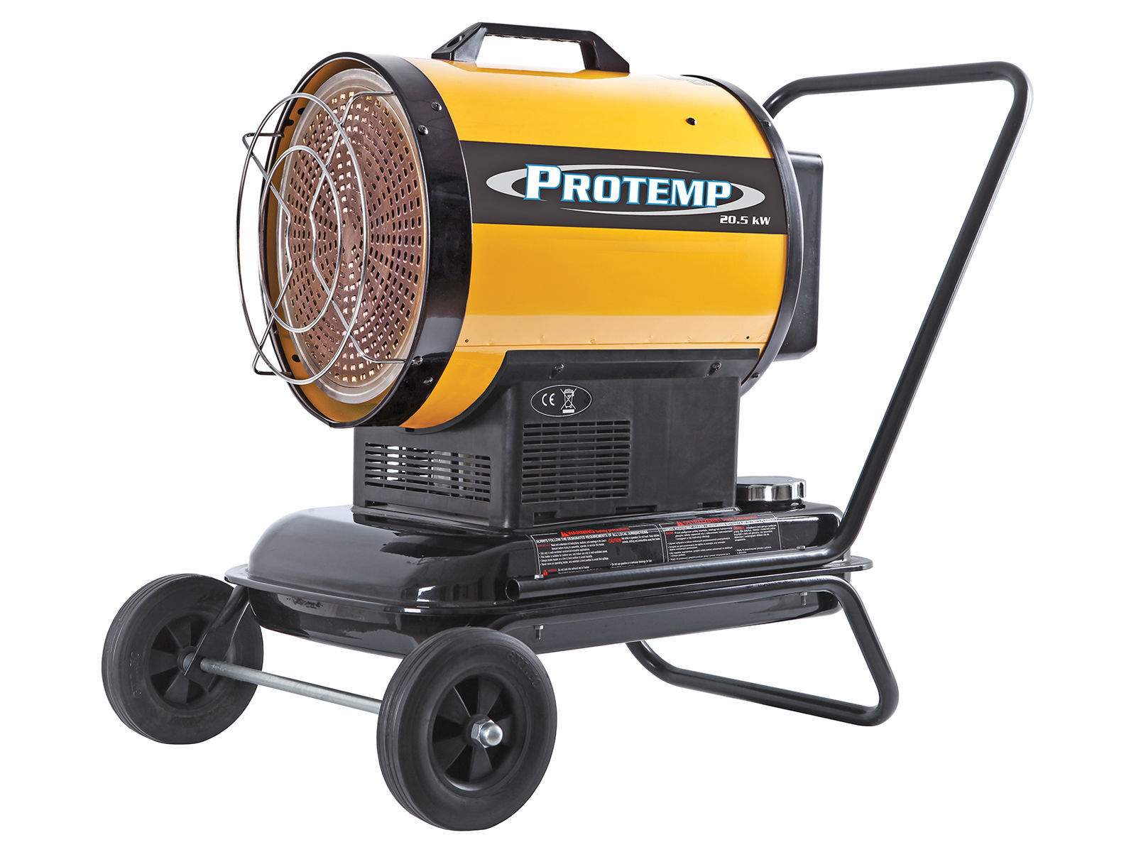 Robust tralle med lakkerte rør og solide hjul for enklere transport av infrarød byggtørker model PT-70-SS-EU; artnr. 450218.