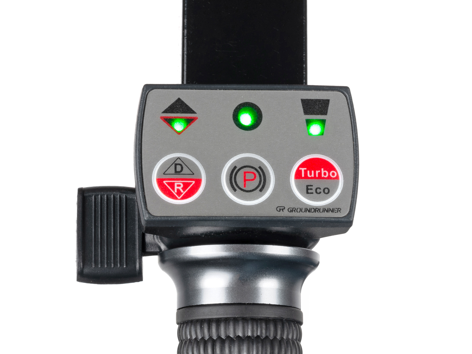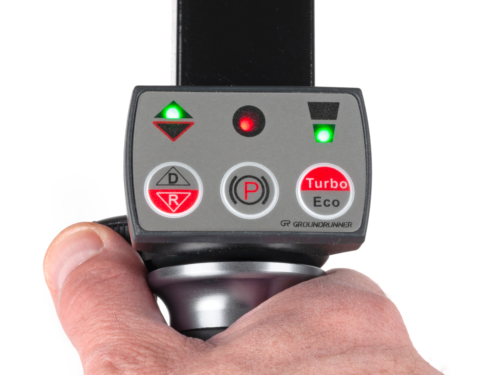 Med gasshendel og kontrollpanel styrer man enkelt kjøreretning, både fremover og bakover (revers).
