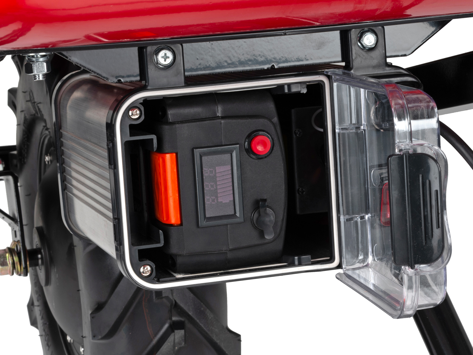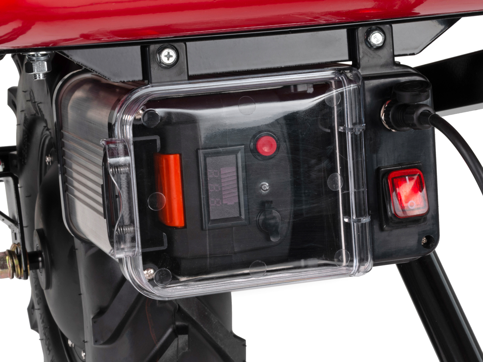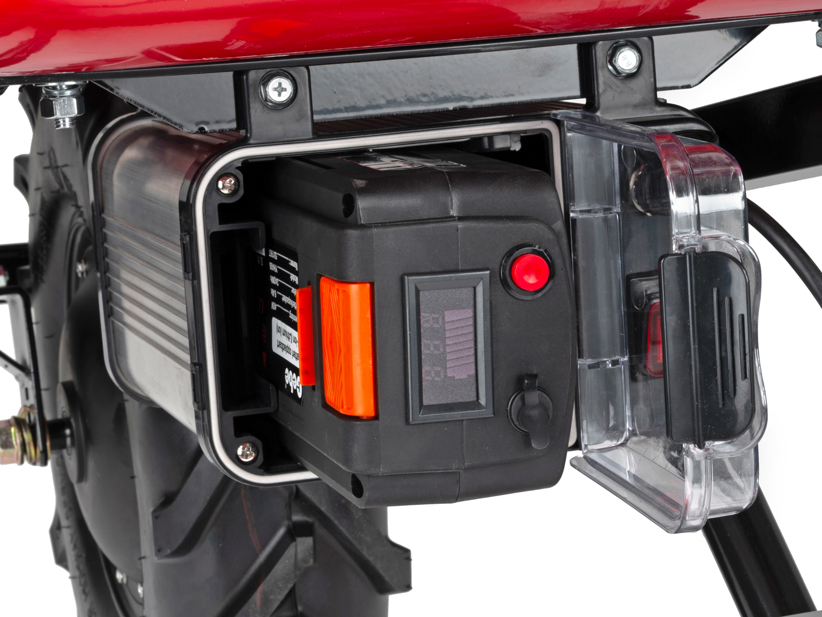 Denne modellen elektrisk, batteridrevet trillebår leveres med kraftig 280 W børsteløs el.motor som drivkilde. Motoren drives av et 40V Li-Ionbatteri med ytelse på hele 6 Ah. Batteri og batterilader medfølger. Fulladet er driftstid fra 4-8 timer, avhengig av last og omgivelsestemperatur.
