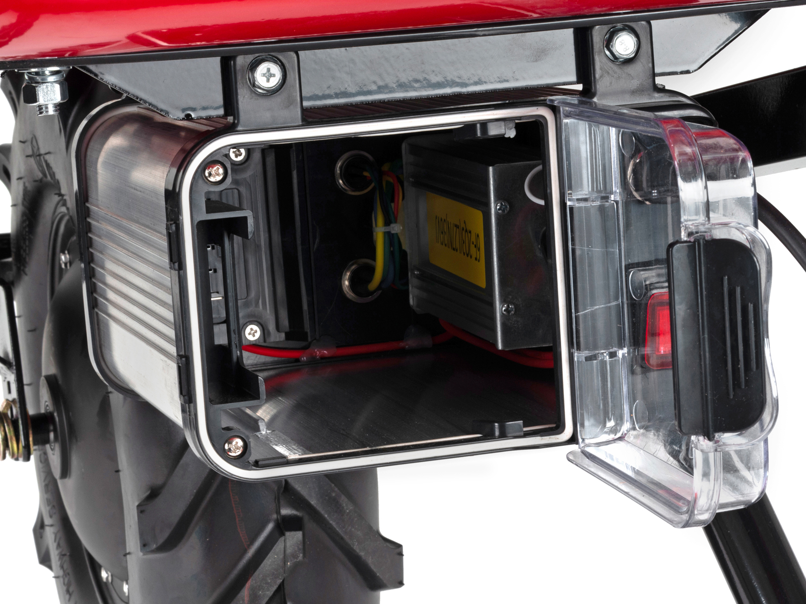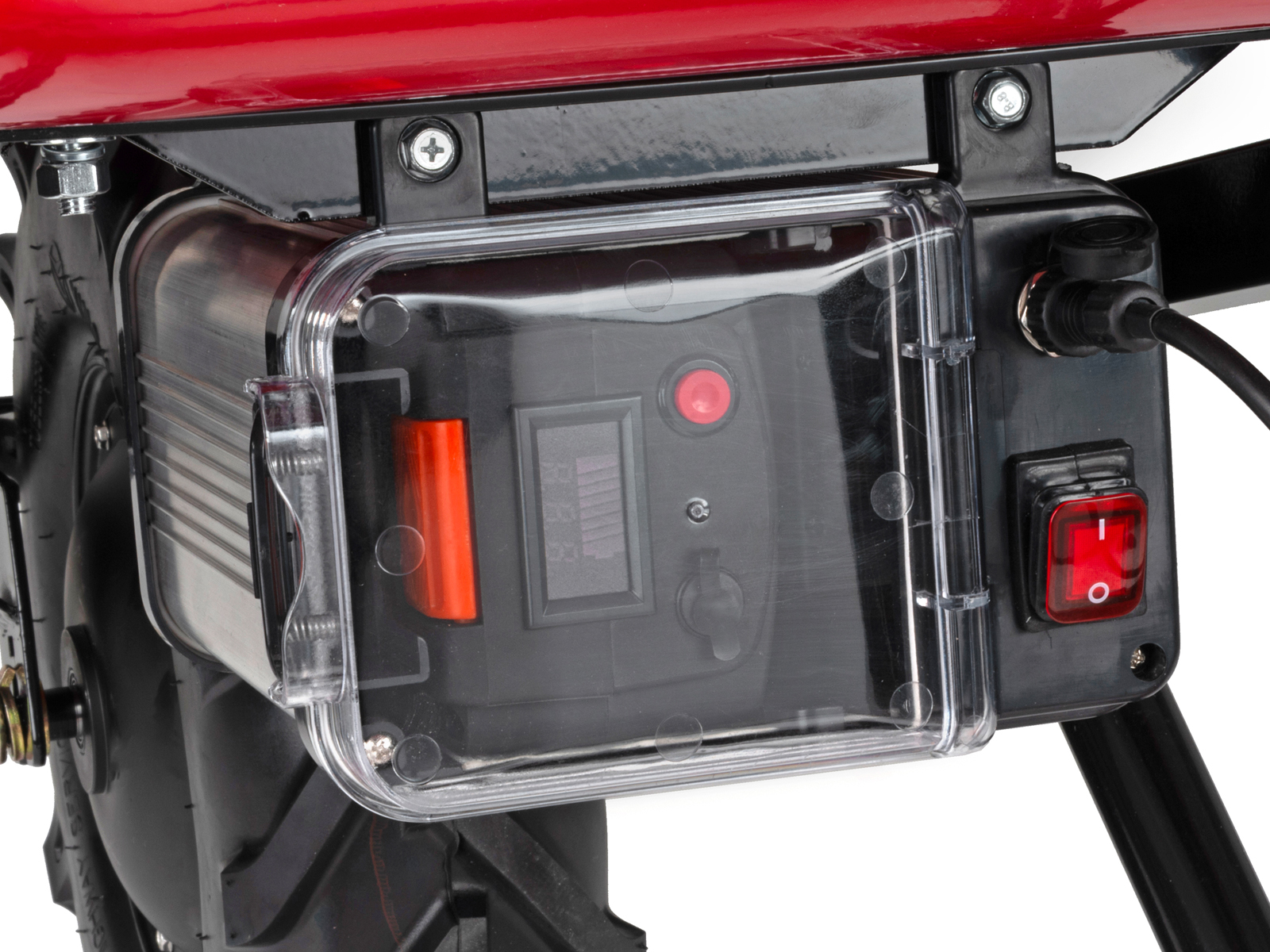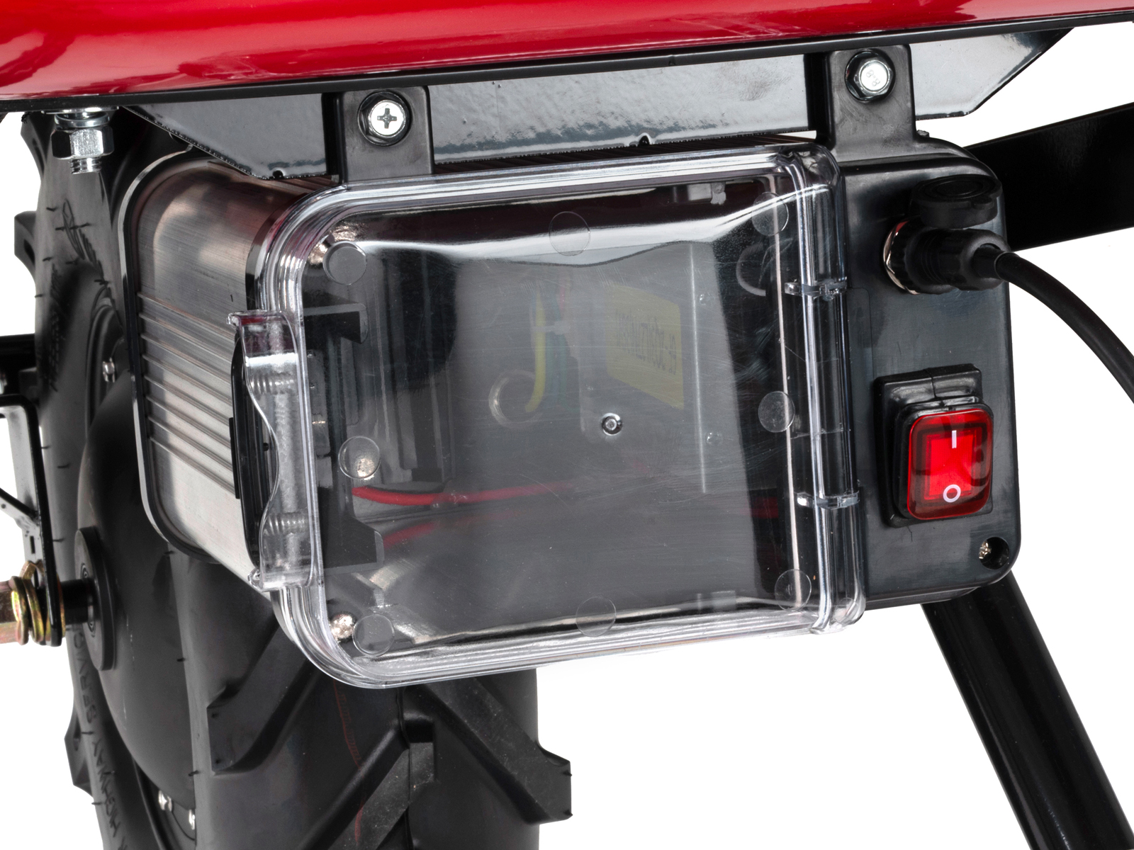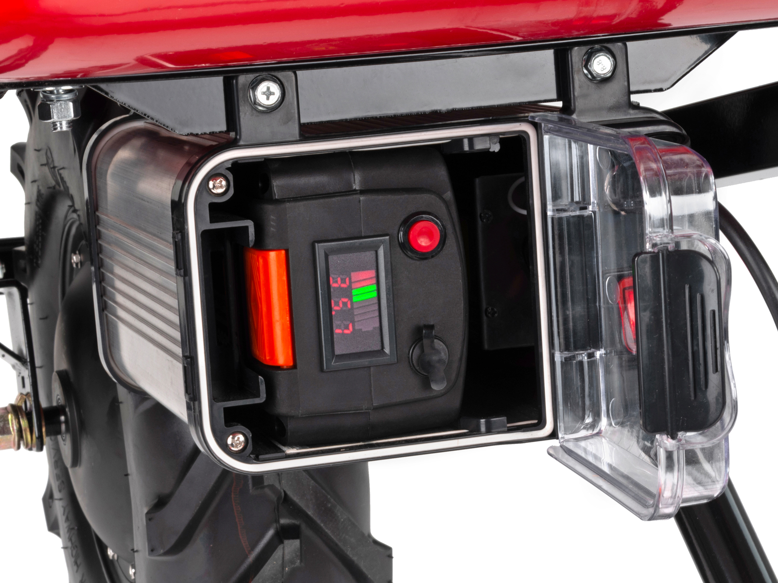 Denne modellen elektrisk, batteridrevet trillebår leveres med kraftig 280 W børsteløs el.motor som drivkilde. Motoren drives av et 40V Li-Ionbatteri med ytelse på hele 6 Ah. Batteri og batterilader medfølger. Fulladet er driftstid fra 4-8 timer, avhengig av last og omgivelsestemperatur.