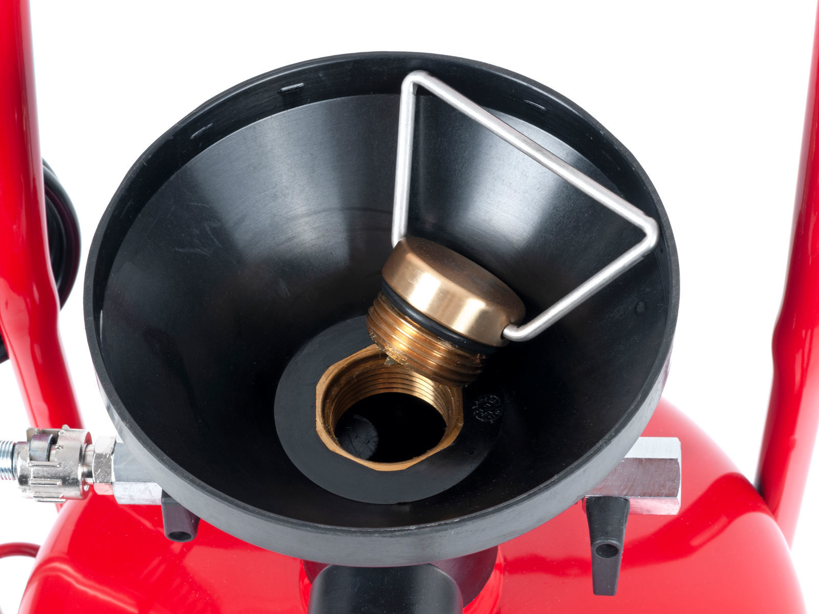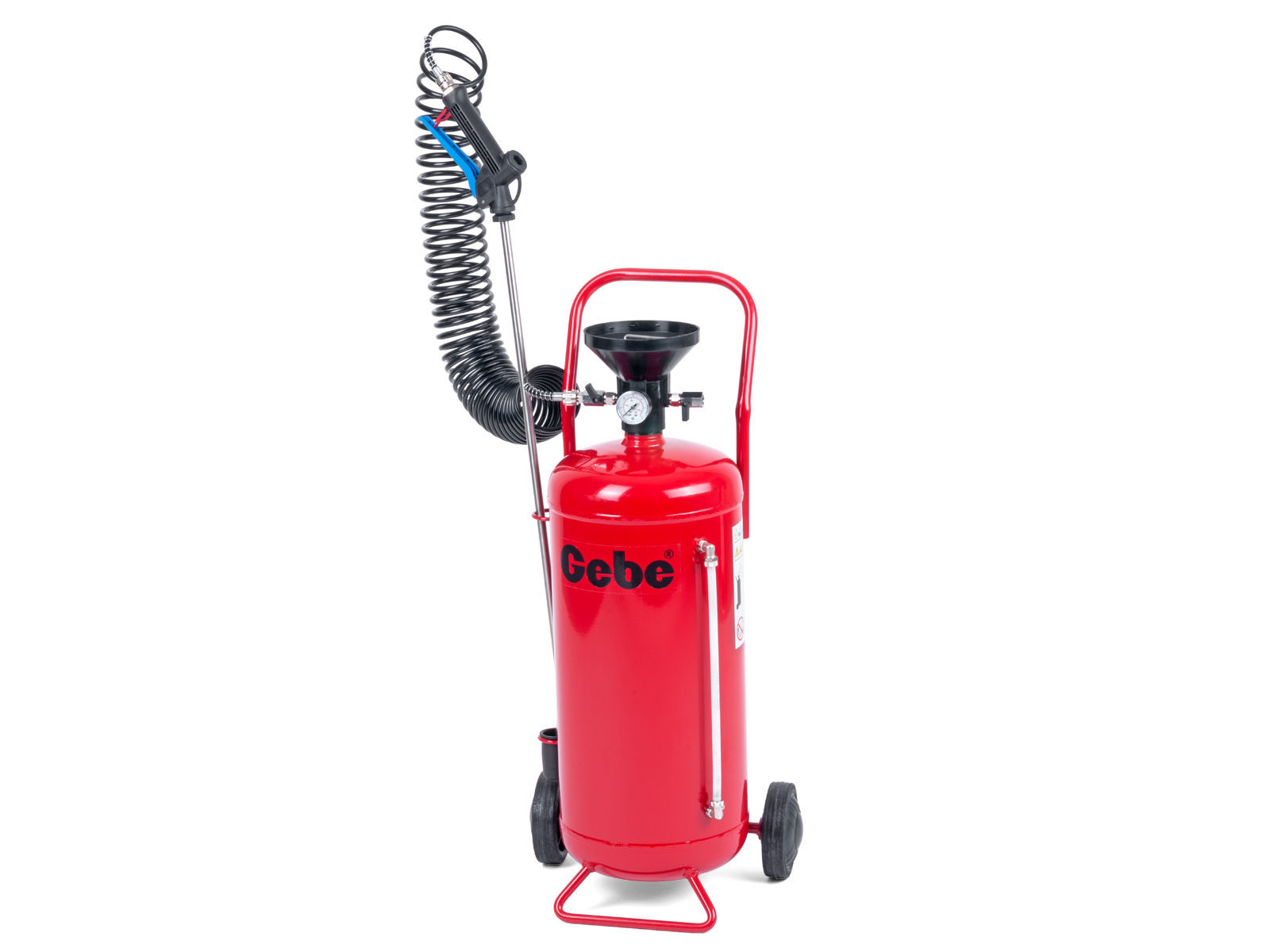 Avfettingssprøyte med 24 liters lakkert ståltank. Leveres med en sprutbeskyttende trakt, manometer, nivårør, 10 meter spiralslange, rustfri stållanse med spraydyse og dysebeskyttelse. Avfettingssprøyter er egnet for ikke-giftig sprøyting som rengjøringsvæsker, smøreoljer eller lignende med lav densitet, til vask av kjøretøy, grafitering, smøring, fordeling av formolje osv. Fyll på med valgt væske opp til 3/4 av tankens volum og sett luften under et trykk på 6 - 8 bar. Nå fungerer avfettingssprøytene selvstendig uten at den må koples til trykkluftsystemet.