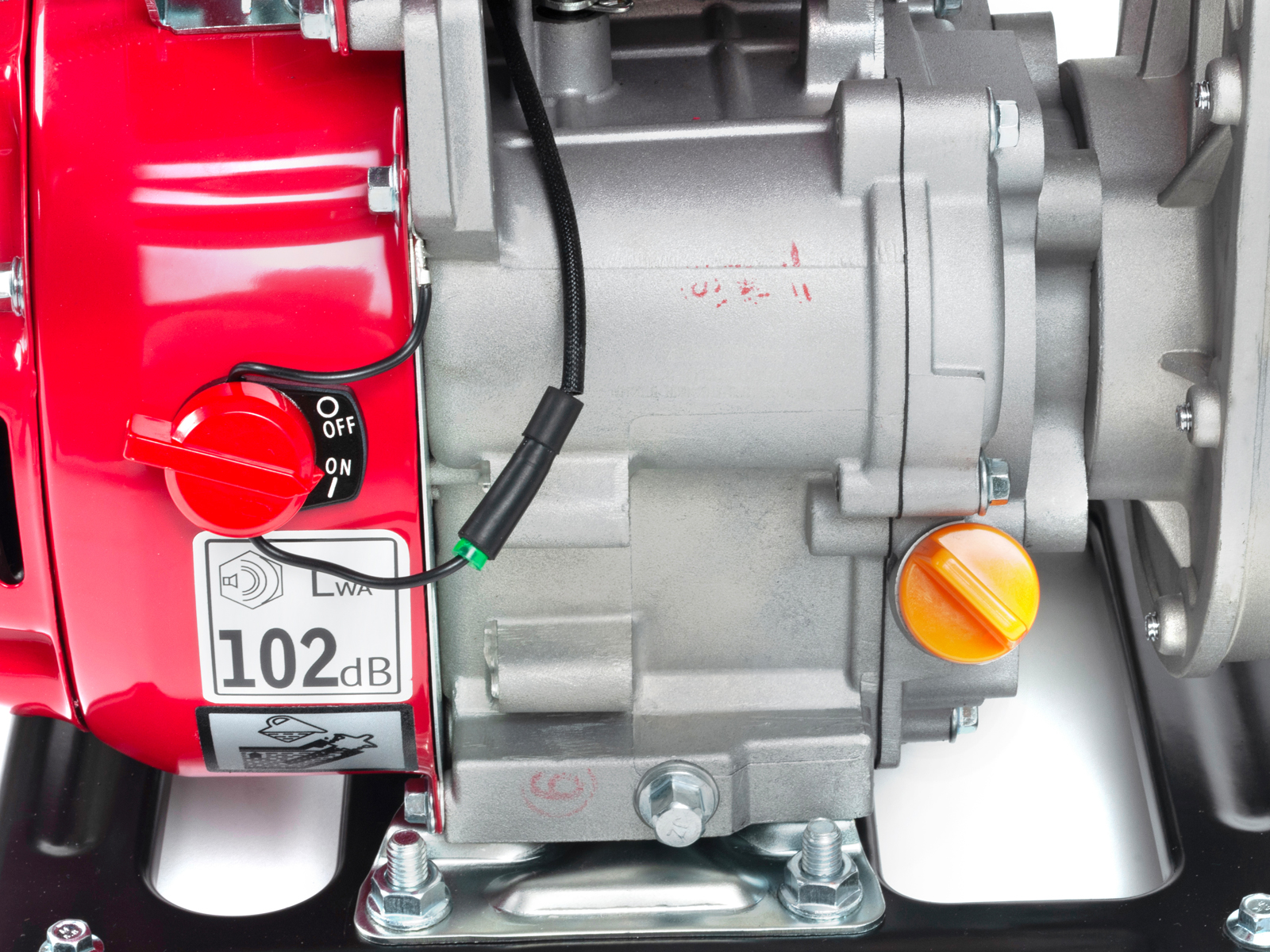 Lettstartet 4-takts bensinmotor (2,0HK) som tilfredsstiller Euro 5-standarden. Lavt bensinforbruk mot mange sammenlignbare modeller gir lavere kostnad og spart energi. Den nye bensintypen 95 oktan E10 kan trygt benyttes på denne modellen*. Motoren er utstyrt med oljevakt, som stanser motoren automatisk ved lavt oljenivå/oljetrykk. Motor/pumpe er montert på ramme med vibrasjonsdempere.