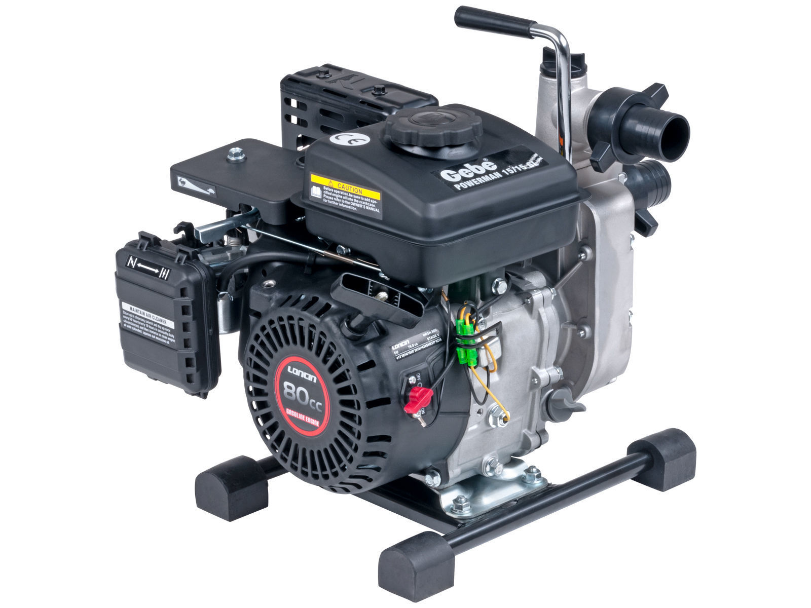 Motordrevet vannpumpe for fylling og lensing av rent vann, ideell for hus, hage og landbruk. Denne modellen er perfekt for vedlikehold av svømmebasseng og badestamper. Meget hendig modell med 1,6 HK, 4-takts, lettstartet bensinmotor, lav vekt på 13 kg, maks. kapasitet 250 l./min. Leveres med to 40 mm (1,5") slangestusser, bunnsil og 3 slangeklemmer. Denne pumpen er beregnet for rent vann.