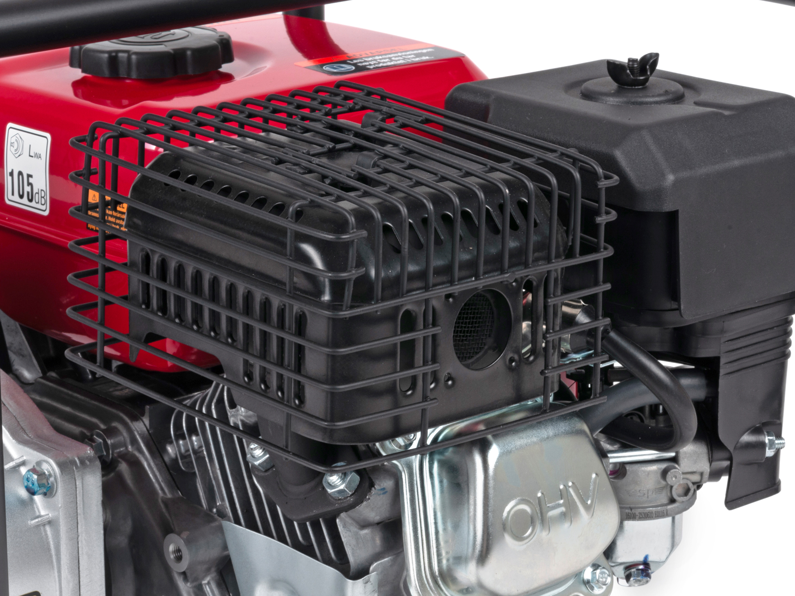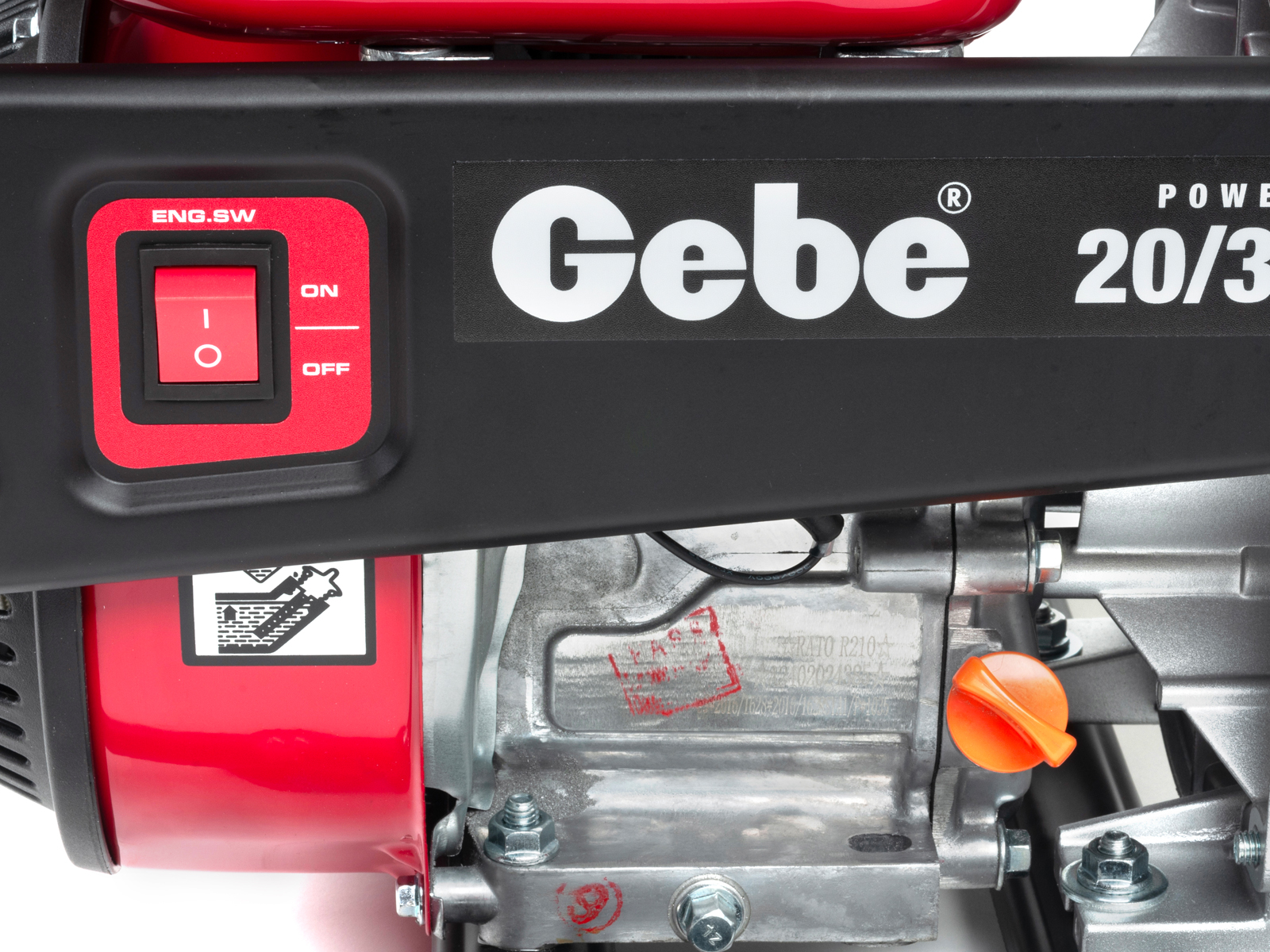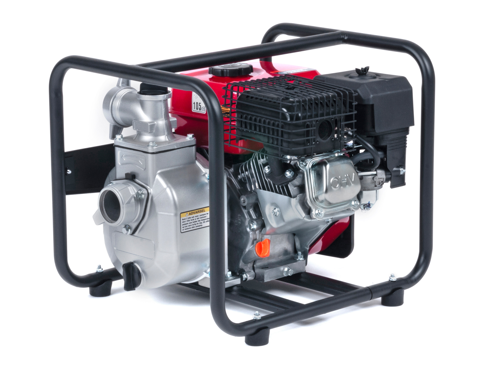 Lettstartet 4-takts bensinmotor (5,5HK) som tilfredsstiller Euro 5-standarden. Lavt bensinforbruk mot mange sammenlignbare modeller gir lavere kostnad og spart energi. Den nye bensintypen 95 oktan E10 kan trygt benyttes på denne modellen*. Motoren er utstyrt med oljevakt, som stanser motoren automatisk ved lavt oljenivå/oljetrykk. Motor/pumpe er montert på helramme med vibrasjonsdempere.
