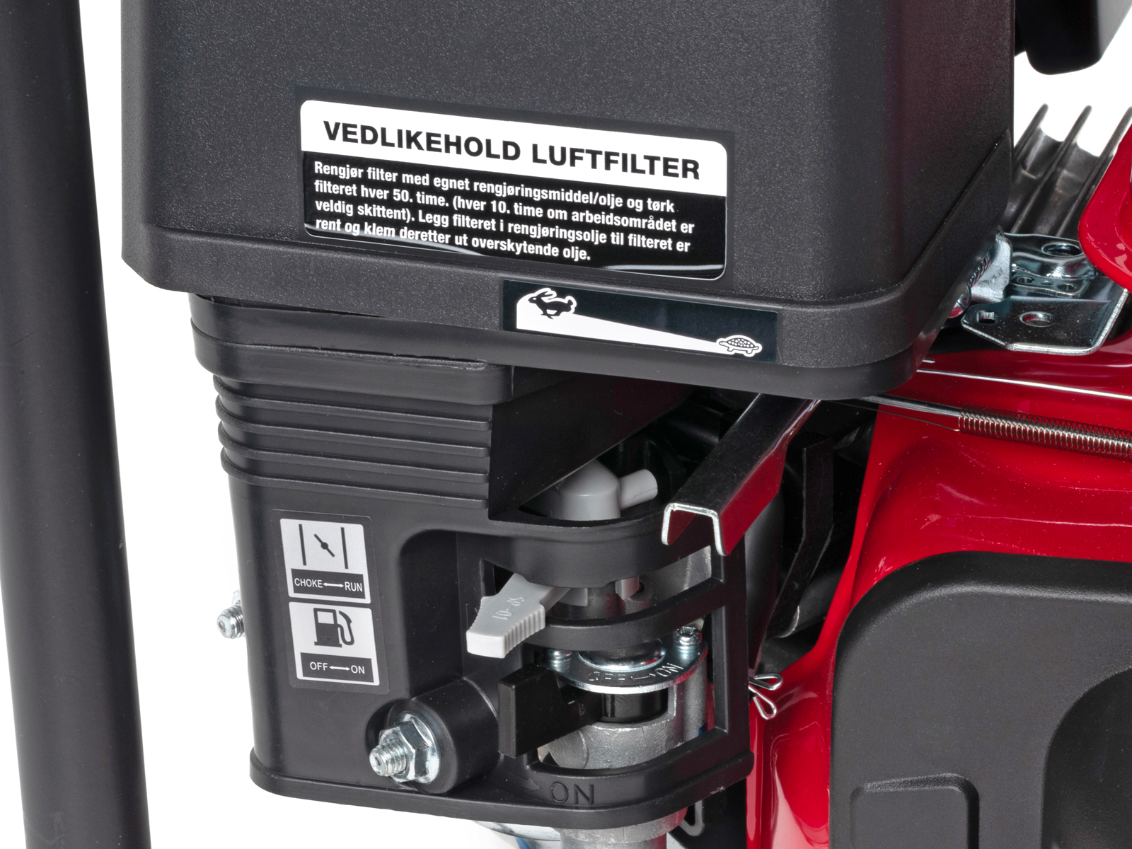 - Stillegående og lettstartet bensinmotor med lavt bensinforbruk – utstyrt med oljevakt