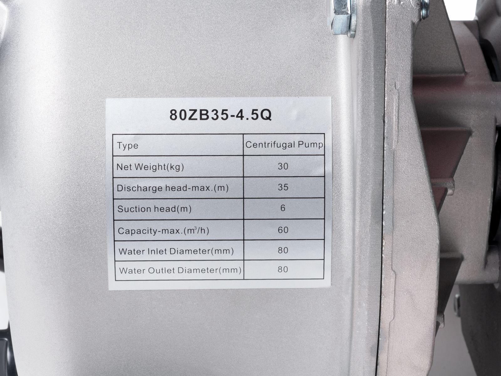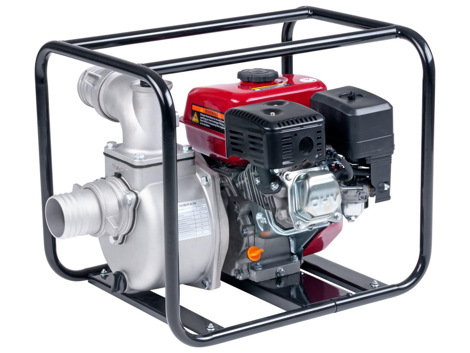 Motordrevet vannpumpe for fylling og lensing av rent vann, ideell for hus, hage og landbruk. Denne modellen er perfekt for vedlikehold av svømmebasseng og badestamper. Kraftig modell med 5,5 HK, 4-takts, lettstartet bensinmotor, leveres i kraftig ramme, lav vekt på 30 kg, maks. kapasitet 1.000 l./min. Leveres med to 80 mm (3") slangestusser, bunnsil og 3 slangeklemmer. Denne pumpen er beregnet for rent vann.
