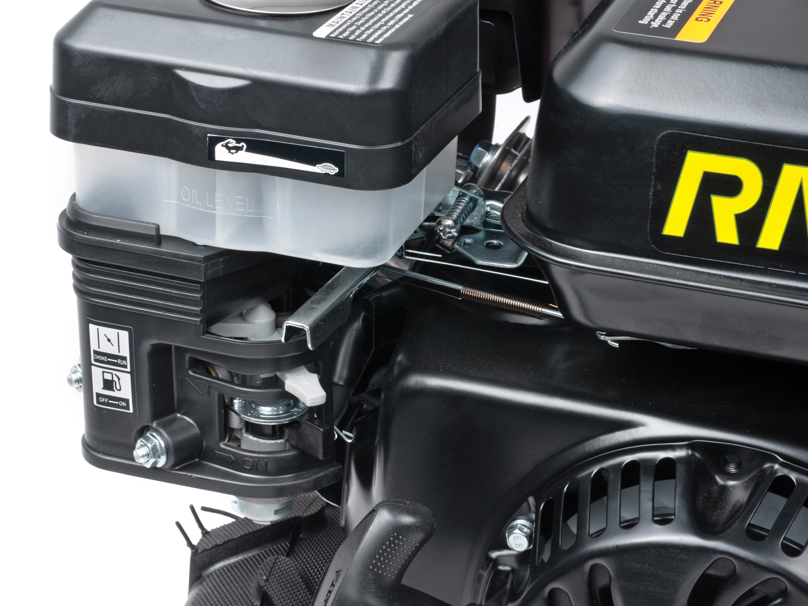 Lettstartet 4-takts bensinmotor (6,5HK) som tilfredsstiller Euro 5-standarden. Lavt bensinforbruk mot mange sammenlignbare modeller gir lavere kostnad og spart energi. Den nye bensintypen 95 oktan E10 kan trygt benyttes på denne modellen*. Motoren er utstyrt med oljevakt, som stanser motoren automatisk ved lavt oljenivå/oljetrykk. Motor er montert på braketter med vibrasjonsdempere.