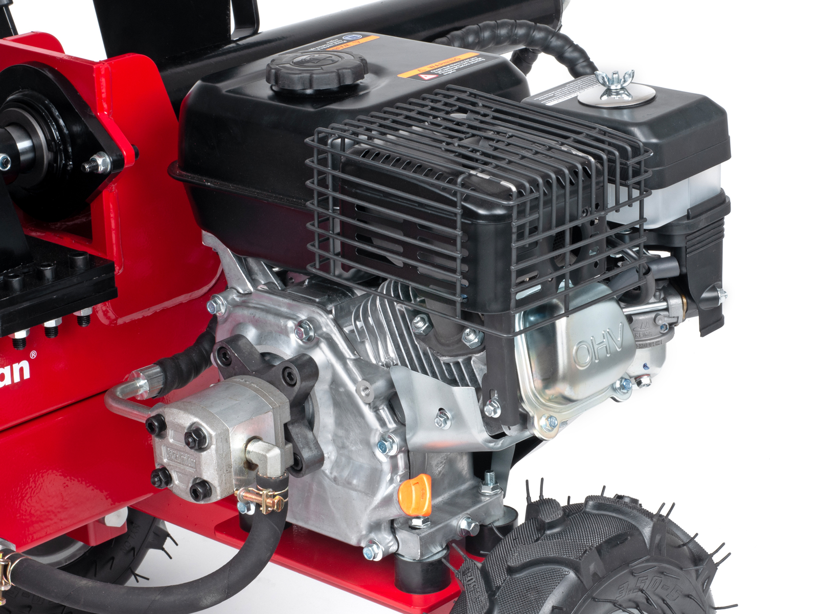 Vedkløveren er utstyrt med 2 hjul for enklere transport.