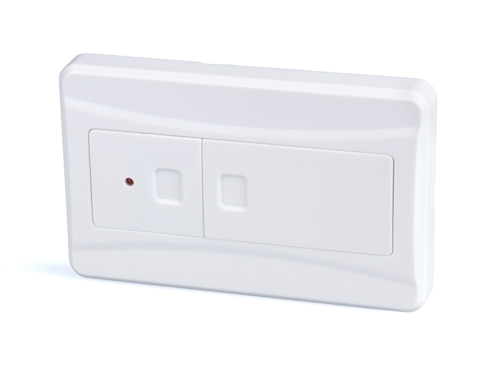 For innendørs montering, 2 kanals, for styring av opptil 2 garasjeportåpnere, frekvens 433,92 MHz.
