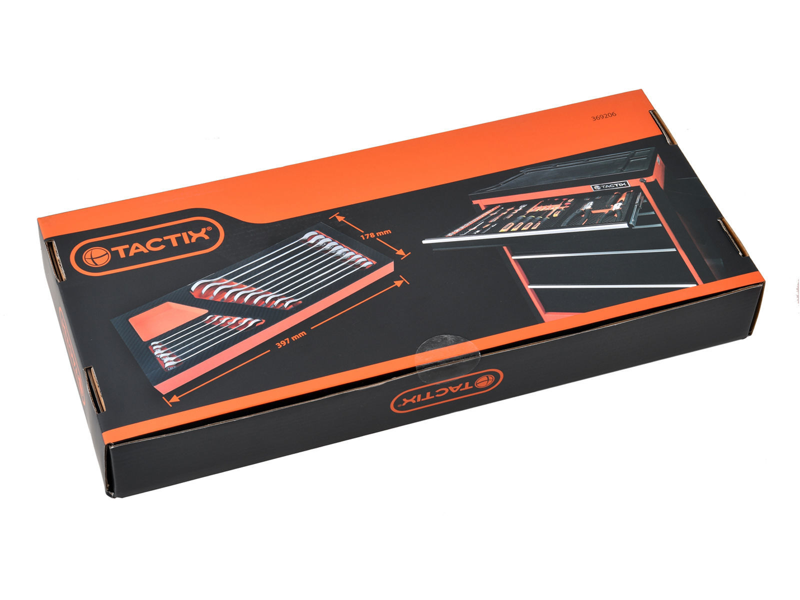 Verktøysett som gir deg enkel og ryddig organisering av dine verktøy. Med det to-fargede skuminnlegget ser du umiddelbart hvor verktøyet skal plasseres og om det er verktøy som mangler. Passer til Tactix skap.