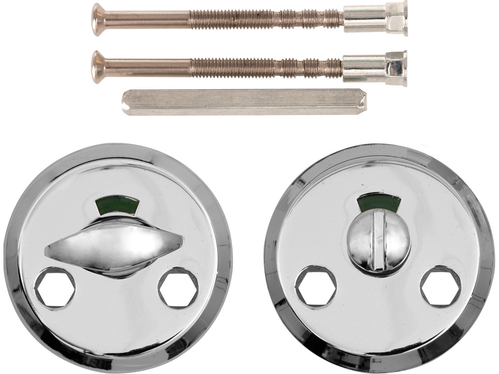 WC-garnityr av zink/alloy for innerdører. Krom utførelse. Passer til dørtykkelse 35-60 mm. Leveres komplett med skilt type R0K3, samt skruer og tilbehør. En del av BASIC-serien.