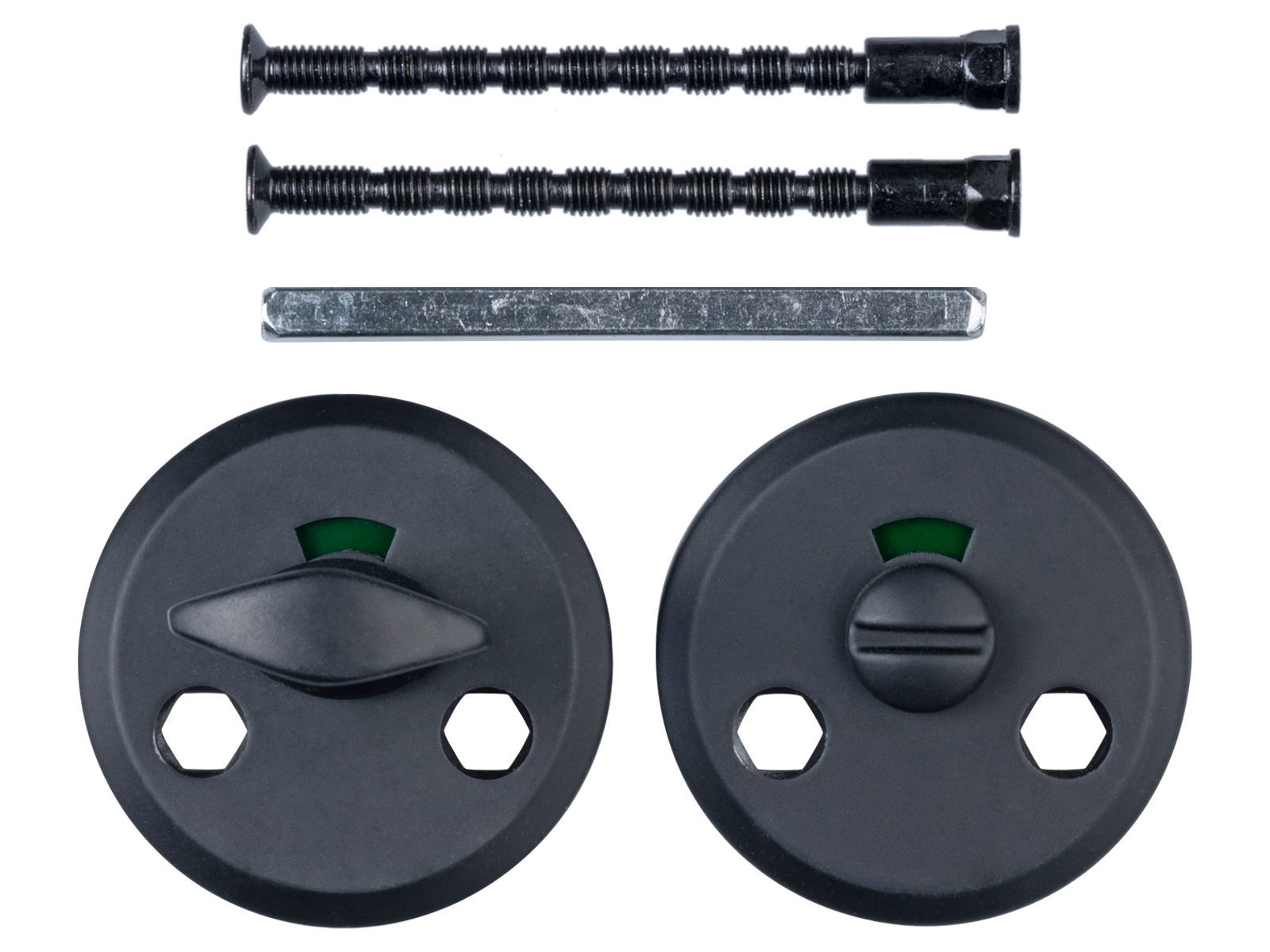 WC-garnityr av zink/alloy for innerdører. Svart utførelse. Passer til dørtykkelse 35-60 mm. Leveres komplett med skilt type R0K3, samt skruer og tilbehør. En del av BASIC-serien.
