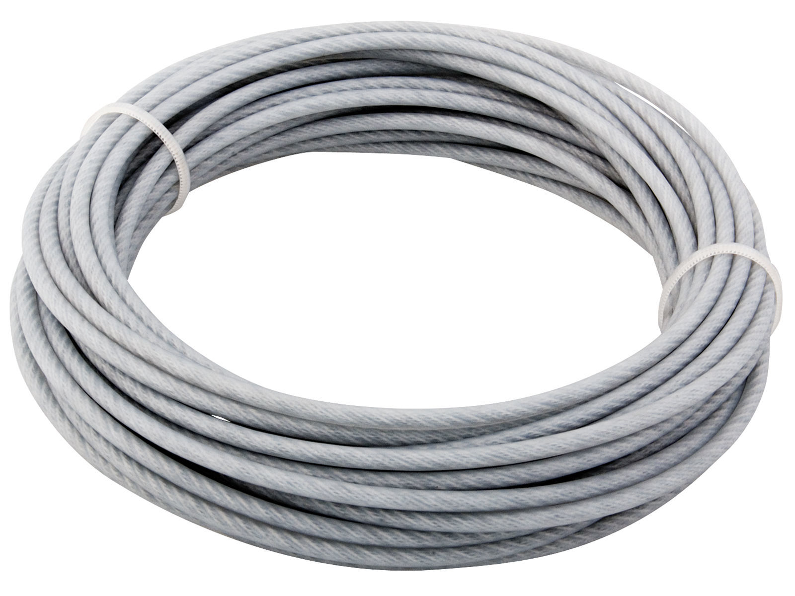 Wire brukes til trekking, sammenkoblinger og oppheng mm. Produsert av 5 tråder x 7 som er flettet sammen til en 2 mm stålwire. Elforsinket overflatebehandling med plastbelegg/PVC. Produktet har en utvendig diameter på 3 mm og en bruddstyrke på 100 kg (estimert uten garantier).